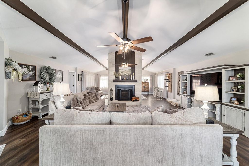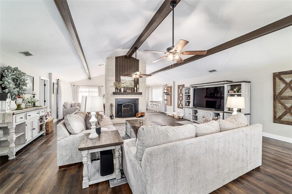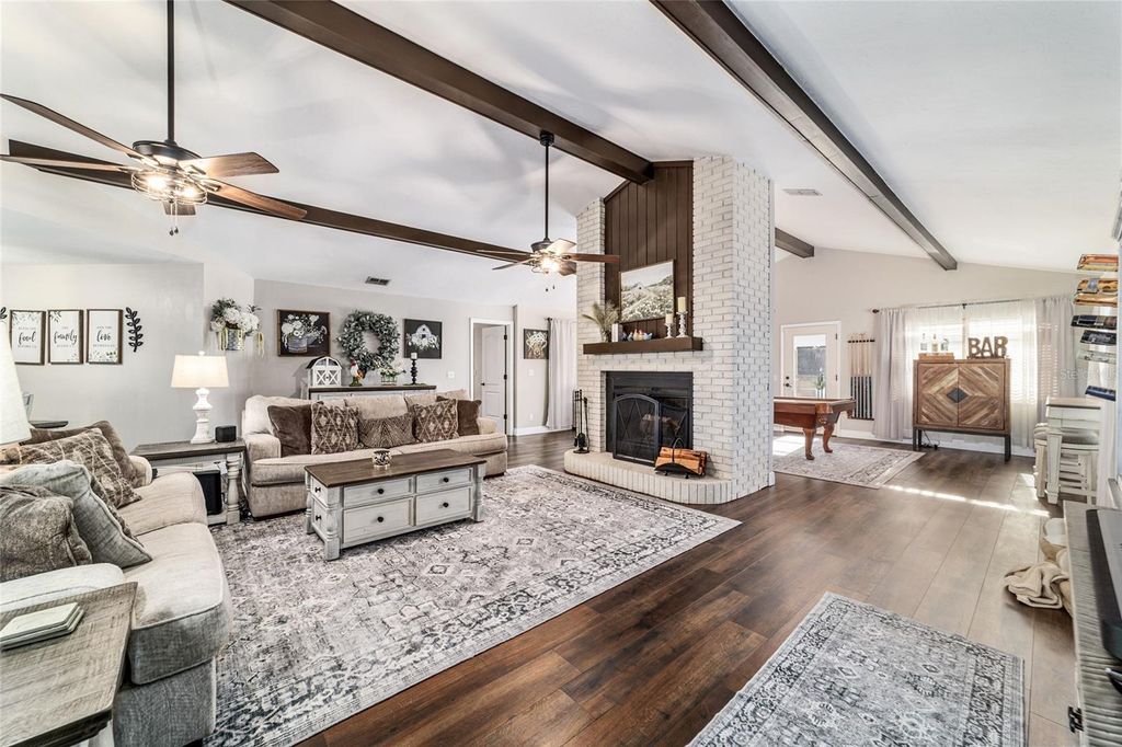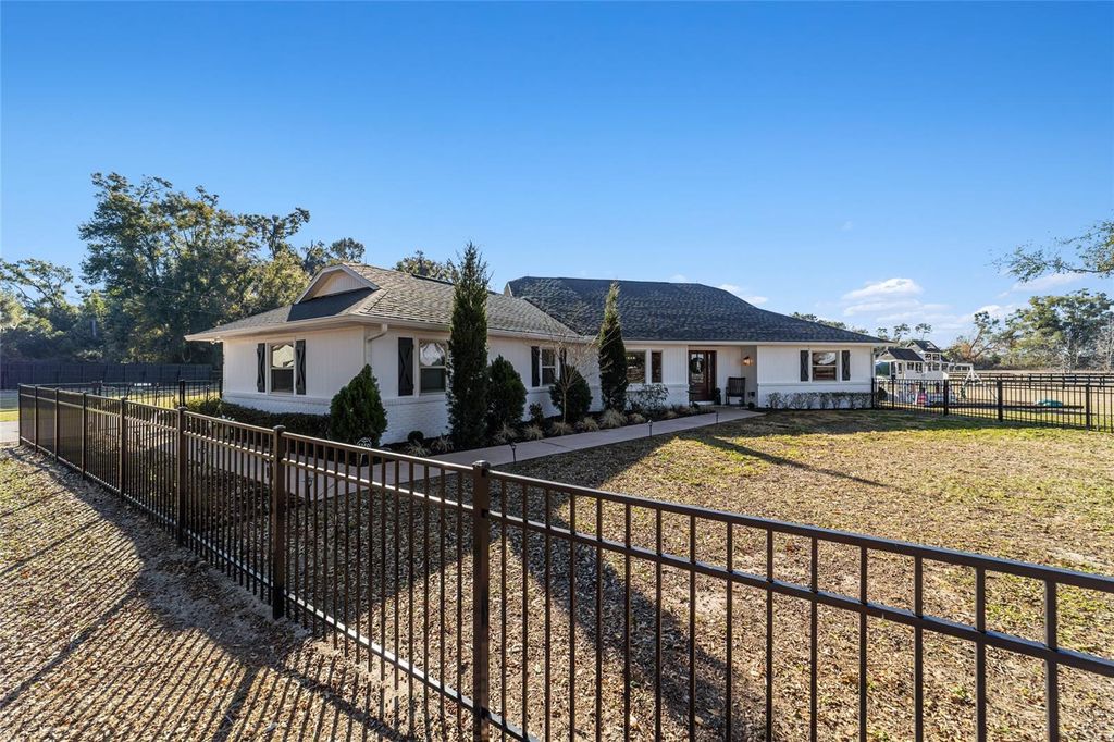 Set on 5 acres within Ocala's desirable Equestrian community of The Meadowlands, this COMPLETELY RENOVATED and thoughtfully designed estate balances high-level functionality with understated elegance. NEW ROOF 2025, 4 bedrooms, 2 bathrooms and over 3,700 square feet of living space with a thoughtfully designed and open floor plan, generous living and entertaining areas, and abundant natural light throughout. You will immediately notice of the soaring ceilings accented with rich wooden beams and upgraded engineered wood floors, throughout! The heart of the home is a stunning dream kitchen, waiting for you to unleash your inner chef! Featuring beautiful quartz countertops, modern appliances, farmhouse solid wood cabinets, designer backsplash and ample seating. Not to mention the custom built kitchen bench overlooking the picturesque front yard views. There is also a formal dining space with custom built-in bar/china cabinet with solid wood cabinetry and high-end fixtures. The spacious great room features a floor to ceiling wood burning fireplace right in the center, opposite of the florida room, perfect for entertaining! Wooden beams and high-end fixtures echo the modern craftsman style that graces the entire home. The primary suite boasts an ensuite bathroom with custom glass-enclosed shower, designer tile, modern quartz countertops, and spacious closet. Unwind by the electric fireplace, or escape to the stunning outdoor space with private doors to the pool. The guest bedrooms as well as guest bathroom are on the opposite end of the home and are also great in size, with large closets and windows. The guest bathroom features quartz countertops, tub/shower combo and plenty of storage. The Florida room features french doors to the great outdoor space. Use this space as a lounge area, billards room or 2nd living area, the possibilities are endless! Step outside to enjoy a screened pool and lanai, overlooking gently rolling pastureland"”perfect for quiet mornings or relaxed evenings. The expansive lanai features a gorgeous pool and hot tub, outdoor entertainment area and sun bathing deck. A custom built-shed to match the main residence conveys with the sale of the home, as well as the outdoor playground and PAID OFF Solar to heat the pool! Not to mention a PAID OFF Generac whole home generator and underground propane! The expansive garage space is renovated for a home gym featuring wood floors and laundry area with custom shelving and PLENTY of storage! There are also two RV hook ups on the property! From its luxurious upgrades to its attention to detail, this home is a rare find that perfectly blends sophistication with comfort. PRICED TO SELL! Home was appraised in 2025 and priced to appraised value! The property is fully fenced and cross-fenced into multiple paddocks and includes a functional shed/warehouse with endless possibilities! Not only is this property zoned A-1, but The Meadowlands also allows for effortless riding both on and off property. Located in a peaceful rural setting with easy access to Ocala, shopping, dining, and area schools, this property offers privacy without isolation. Whether you're seeking space for animals, room to roam, or a serene retreat from city life, this property delivers versatility, comfort, and lifestyle. Just 20 minutes from both the World Equestrian Center and HITS! Offering a rare blend of natural beauty, modern infrastructure, and income-generating potential, this exceptional property is a true gem!