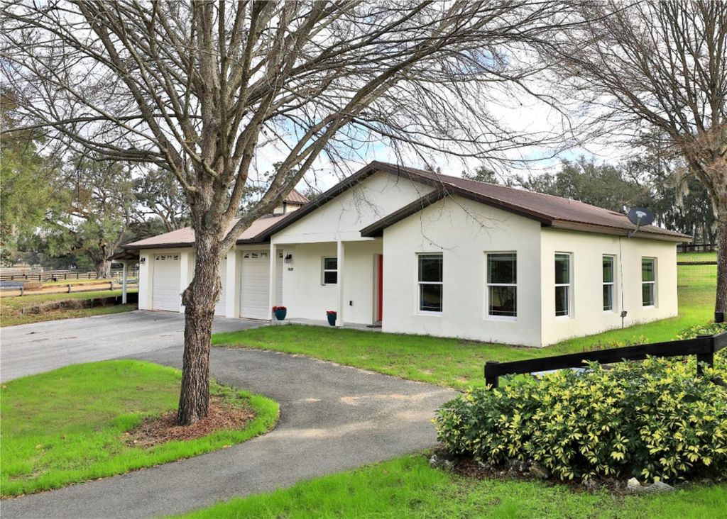 Perfectly positioned 20+/- acres off the highly desirable 225A corridor, this exceptional equestrian property offers a rare combination of quality construction, scenic views, and prime location. Rolling pastures and long-range vistas set the tone as you arrive at this thoughtfully designed farm, ideal for both private use and professional operations. The property features an 8-stall concrete block barn, complete with well-appointed living quarters, including a one-bedroom layout, open kitchen, and inviting living and dining areas. A covered front porch overlooks the center aisle, perimeter fencing, and surrounding pastures, creating a picturesque and functional equestrian environment. The barn also includes a generous side overhang, providing flexibility for equipment storage, additional work areas, or future expansion. The main residence is complemented by an attached three car garage. Positioned on NW 80th Avenue, just minutes from Ocala's premier equestrian venues, this elevated farm delivers privacy, accessibility, and enduring value, an exceptional offering in one of the region's most sought-after equestrian corridors. 12 minutes from the World Equestrian Center and close to HITS.