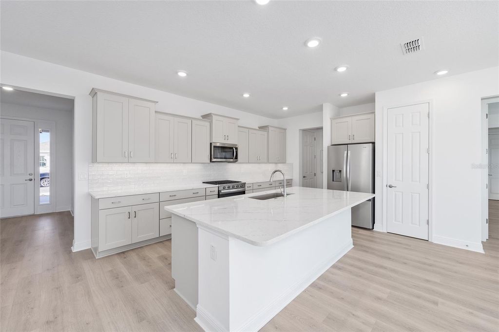 Welcome to the beautifully crafted Beatrix model, a new construction home designed for effortless Florida living. This thoughtfully planned residence features 2 bedrooms, 2 baths, and a 2-car garage with dedicated golf cart space, offering both comfort and functionality. The open living area is enhanced by luxury vinyl flooring, recessed lighting, and a seamless flow between the living room and kitchen"”perfect for everyday living and entertaining. The chef-inspired kitchen showcases an oversized quartz island, sleek cabinetry, subway tile backsplash, and stainless-steel appliances, all overlooking the main living space. A versatile flex room provides endless possibilities for a home office, hobby room, or guest space, while the laundry suite adds convenience with ample storage and workspace. The primary suite offers a peaceful retreat with a spacious layout and well-appointed en-suite bath. Located within the desirable Longleaf Ridge community at On Top of the World, this home combines modern finishes, smart design, and quality craftsmanship in a vibrant setting.
