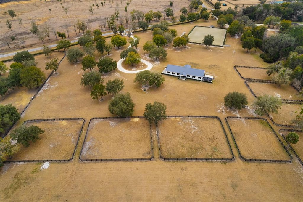 This is a rare opportunity to acquire a high-quality, well-appointed equestrian estate of 24+ acres near WEC, offering exceptional training facilities, solid infrastructure, and the option for a fully equipped, move-in-ready operation in the heart of Ocala's premier horse country. Discover an exceptional, turnkey equestrian property ideally located 15 minutes from the World Equestrian Center. and 7 from HITS. Designed with both performance and functionality in mind, this meticulously developed farm offers premium facilities, quality construction, and the rare opportunity to purchase fully equipped and furnished. The impressive 36' x 120' center-aisle barn features eight (8) spacious 12' x 14' stalls, each equipped with 4' x 4' windows, providing excellent light and ventilation. The barn includes two concrete pads on each end, with the rear housing two wash stalls. A dedicated office/tack room complete with a bathroom, provides a comfortable and efficient space for barn management. Additional amenities include a separate laundry room and a feed room, ensuring organization, convenience, and smooth daily operations for a fully functional equestrian facility. Both the barn and wash rack are serviced with hot and cold water. All metal work, including stalls and doors, was custom completed by Double R, reflecting superior craftsmanship throughout. At the heart of the training facilities is a Wordley-Martin riding arena measuring 200' x 250', fully irrigated and operating on a timed system, ensuring consistent footing year-round. The property is fully fenced by Seminole Fencing. It features eight generously sized paddocks, thoughtfully laid out and enhanced with mature trees that provide natural shade, offering a comfortable and functional environment for horses year-round. Additionally, a large paddock of nearly 5 acres provides ample space for turnout and grazing and is equipped with two run-in sheds/stalls, delivering flexibility, shelter, and convenience for a variety of equestrian needs. Also there are two wells and septic tanks, and 2 RV hook ups. The thoughtfully designed 36 x 72 barndominium (2,592 sq. ft.) blends functionality with modern elegance. The 1,728 sq. ft. apartment is a striking living space featuring soaring 20-foot ceilings and large, custom-designed windows that flood the interior with natural light while offering stunning views of the arena. The interior showcases a sleek, modern design, creating an open and airy ambiance throughout. Fully furnished and equipped, this turnkey residence provides both comfort and style, making it perfect as a primary home, guest quarters, or income-producing opportunity. A spacious 864 sq. ft. garage offers ample room for multiple vehicles, equipment, and tools"”ideal for both everyday use and farm operations. Also conveying with the property: 2022 Kubota L2501 4-wheel-drive tractor, lightly used at approximately 150 hours per year, equipped with a front loader bucket and Brush Hog attachment. 2025 Tiger Cat 61" zero-turn mower, recently purchased in November 2025. Wordley Martin ring drag. 100 lb spiker seeder drop spreader for pasture and ground care. 8' x 8' heavy-duty harrow drag for paddock conditioning. Various tools and equipment, including Stihl hedge trimmers, Stihl chainsaw, fuel cans, and other essential farm tools. This is a must see! Make your appointment now!