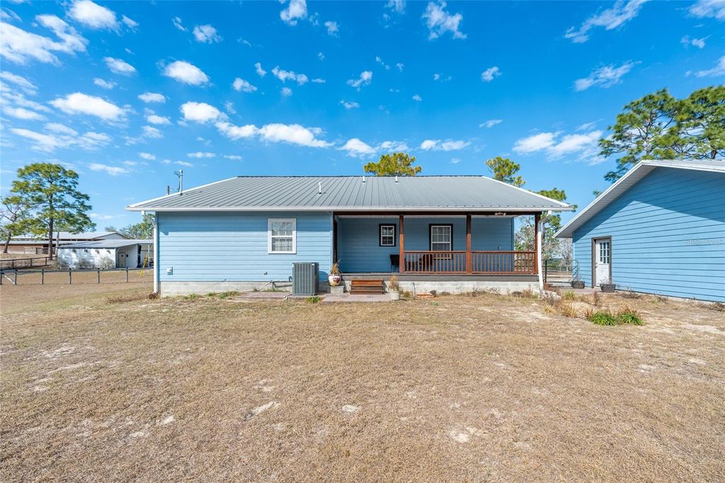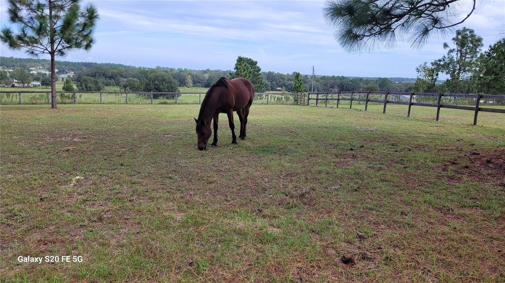 Under contract-accepting backup offers. Fantastic 20 acre horse farm featuring a charming three-bedroom, two and a half bath open-concept home and extensive equestrian facilities, this wonderful working farm is set on an exceptionally private location atop a gentle hill. Surrounded by mature trees and open pastures, the property offers stunning views from every window and a peaceful, secluded atmosphere. An elegant gated entrance leads to a circular driveway, providing easy access and convenient turnaround for vehicles and trailers. The inviting home welcomes you with a spacious front porch, perfect for enjoying morning coffee while taking in the tranquil landscape. Inside, the updated open floor plan features a bright great room that seamlessly connects the living and kitchen areas. The kitchen is equipped with warm wood cabinetry, a breakfast bar, and a generously sized walk-in pantry. Three comfortable bedrooms capture beautiful views of the surrounding farm, while a dedicated laundry room provides additional storage and functionality. The rear door opens to a back porch and fenced yard ideal for pets. A detached two-car garage adds convenience and extra storage space. Equestrian facilities are thoughtfully designed for efficiency and versatility. The main 60 x 40 covered barn includes seven shedrow stalls with outside access and 12 x 24 paddocks on both sides. One side is currently used for hay storage but can easily be converted to additional stalls. The center of the barn can be used for riding, additional stalls, or as a covered gathering space for multiple horses. A second 20 x 40 barn is used for tack, feed, and horse trailer storage, with 15 x 25 shedrow extensions on each side for tractors, four-wheelers, and equipment, along with a wash stall at the rear. Additional amenities include a four-stall shedrow run-in and a 12 x 24 shed in another pasture. Training facilities include a 100 x 200 grass arena, a 20-meter round pen, and two large pastures, providing ample space for riding, turnout, and livestock. The ten acre parcel is well established, seeded with bahia and surrounded by beautiful shade trees. Perimeter fenced, it is ready for your livestock immediately. Combining privacy, functionality, and breathtaking views, this well-maintained property offers a rare opportunity for horse enthusiasts or anyone seeking a versatile agricultural retreat. This property is available with two options: ten acres or twenty acres. Refer to MLS OM718769