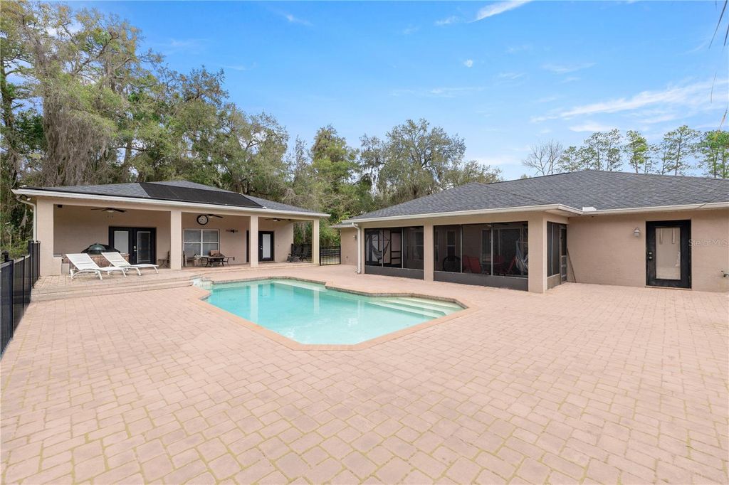 Welcome to a rare opportunity offering space, flexibility, and resort-style living just minutes from the World Equestrian Center. Situated on over two fully fenced acres, this exceptional property delivers privacy and functionality in one of Ocala's most desirable locations. The main home features four generously sized bedrooms plus a dedicated office, all designed within a bright and inviting open floor plan. The spacious living area flows effortlessly into the dining space and a beautifully designed kitchen complete with a breakfast nook, creating the perfect environment for both everyday living and entertaining. Large windows fill the home with natural light, enhancing the open and airy feel throughout. Outdoors, your private retreat awaits. Enjoy the in-ground pool surrounded by elegant pavers and an outdoor kitchen space ideal for hosting gatherings or relaxing under the Florida sun. The expansive acreage provides plenty of room for recreation, animals, or additional storage, all securely fenced for added peace of mind. A detached mother-in-law suite adds tremendous value and versatility, offering its own private bedroom, full kitchen, living room, and bathroom"”perfect for guests, extended family, or income-producing potential. The oversized RV and boat garage is a standout feature, providing ample space for large vehicles, equipment, or a workshop. A circular driveway enhances both convenience and curb appeal, while the 2022 ROOF and 2024 A/C system ensure comfort and confidence for years to come. This is a unique opportunity to own a multi-functional estate near WEC that truly has it all.