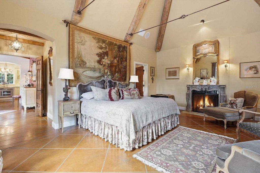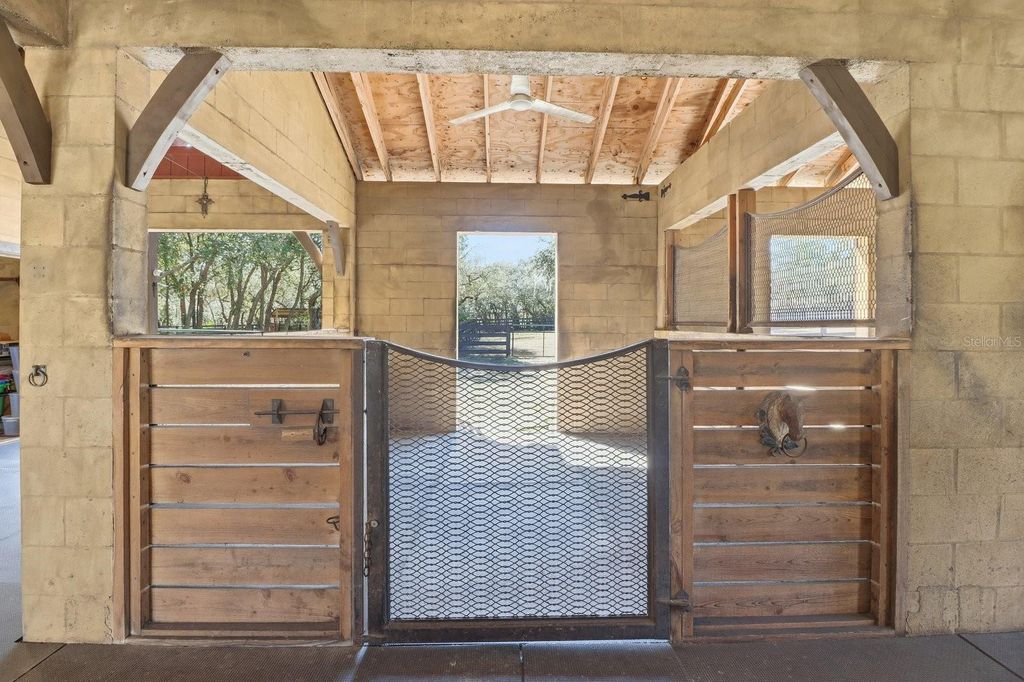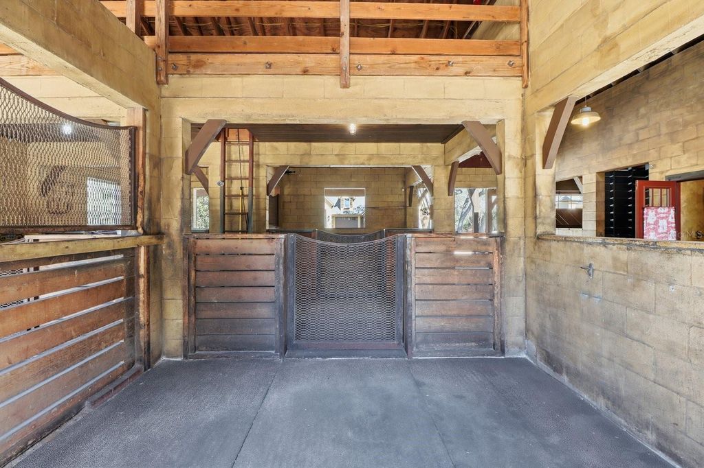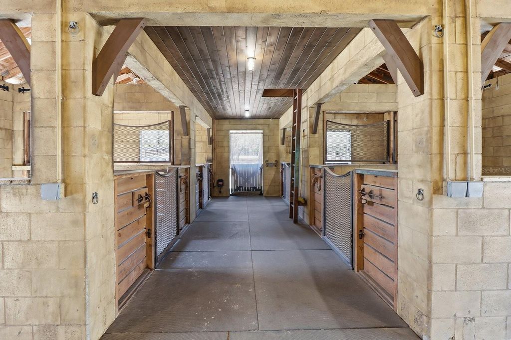 RARE OFFERING! Step into a storybook French Country Mansion set on 6 pristine fenced acres along one of the 28 miles of equestrian trails in sought after Pine Ridge Estates. This enchanting 3 BR, 3.5 bath estate features timeless character, featuring imported wood ceiling beams from a Vermont church and antique doors sourced from historic churches, creating a warm, soulful atmosphere rarely found in modern construction. Complementing the main home is a four stall stable with bathroom, air conditioned feed and tack rooms. A separate boat and RV building provides exceptional storage for recreational buildings and equipment. On the second story of the building one can find a full apartment with full bath and kitchen, ideal for guests, staff or extended stays. Three separate buildings create a true compound feel- offering versatility, privacy and lifestyle rarely available in one cohesive property. This is an opportunity to acquire a refined estate offering acreage, trail access and premier auxiliary structures in Pine Ridge's most sought after setting.