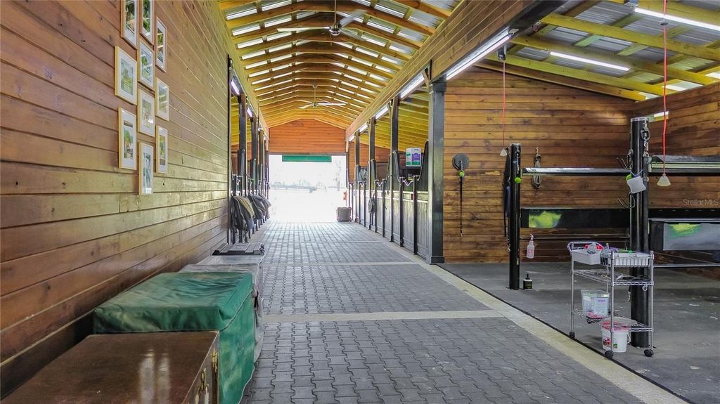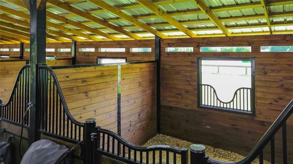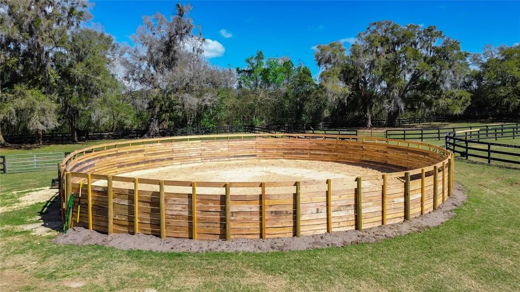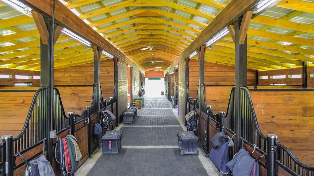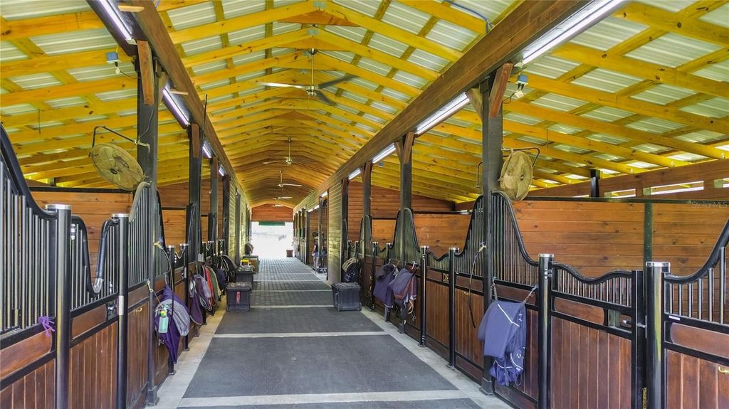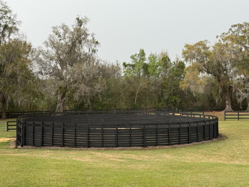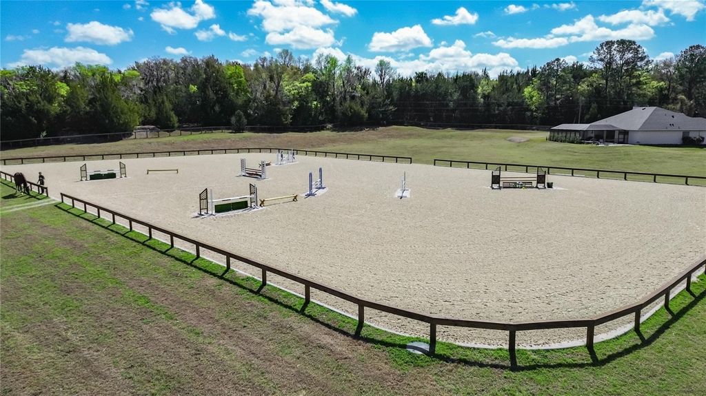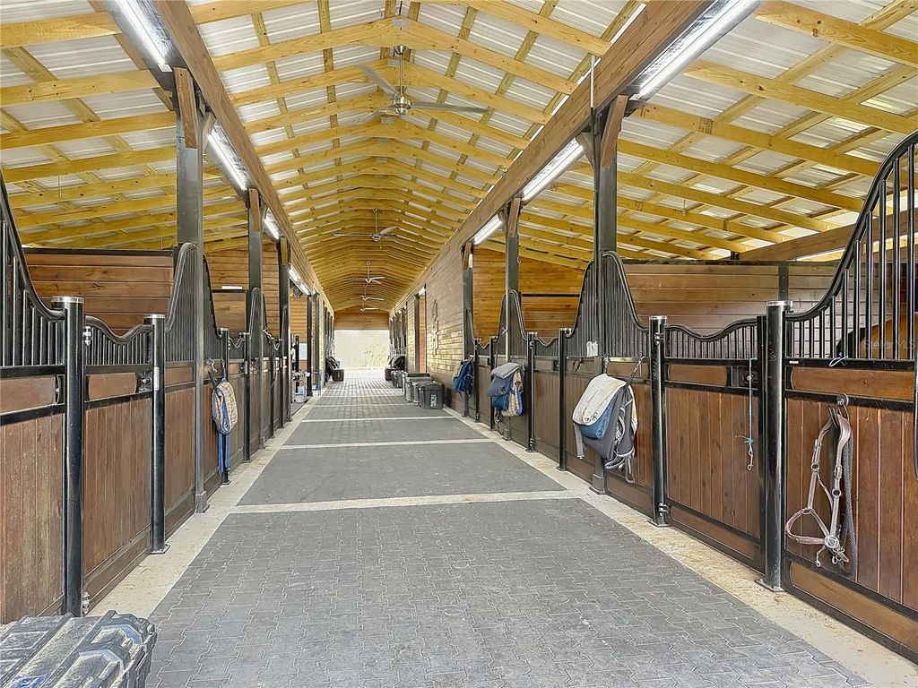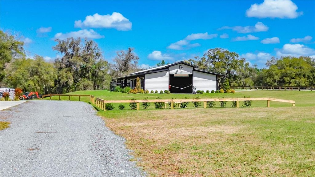 Overlooking 12.45 acres of vibrant Central Florida countryside at the end of a quiet road, this tastefully updated horse farm is well-suited for multiple disciplines. Fenced and gated, the property features a lovely tree-lined drive that leads past multiple paddocks and pastures towards the main portions of the property. Designed with equestrians in mind, the farm features a new center-aisle show barn with 16 custom Saratoga stalls, grooming stalls, tack room, feed room, wash rack, fly spray system, hot water, bathroom, and hay storage, providing a comprehensive setup for horse care and management. 12 paddocks and pastures are in place with board fencing throughout the property, dotted with mature oaks for gentle shade. A 145x245' ebb & flow arena has been established and lovingly maintained, and additional amenities include a round pen, large concrete pad area with RV hookups for long-term guests or seasonal rentals. At the heart of the acreage is the eye-catching 4-bedroom, 3-bath home, which features a brand new roof, a paver driveway and walk-way, covered entry, and mature landscaping. Light and bright, the interior of the home provides over 4,000 sqft of space with an open floor plan and high ceilings throughout. A lovely wood-burning fireplace with mantle acts as the focal point in the living area, perfect for gathering and relaxation. The nearby kitchen is designed for functionality and entertaining with solid wood cabinetry, ample counter space, tiled backsplash, stainless steel appliances, and a large pantry for added storage. Adjacent is a spacious breakfast nook for day-to-day meals or a morning coffee, while the formal dining area is perfectly suited for more formal get-togethers. Each bedroom is warm and inviting, but the primary suite is a true escape with an extra spacious layout, tray ceiling, huge walk-in closet, direct access to the pool area, and a private en-suite bathroom with dual vanities, garden tub, and walk-in shower. Other bedrooms and an additional bonus room provide flexibility for guests, office space, or hobbies as desired. Outdoor living is equally impressive! At the back of the home is a stunning pool area which has been completely screened-in with a new enclosure, with a covered area for shaded seating overlooking the sparkling in-ground pool. An additional concrete patio outside of the enclosure provides additional space for seating, a barbecue area, and much more. A whole-house generator is in place, providing ease of mind even during Florida's rainier season. Located within Reddick, this farm is just a scenic drive to a variety of show and competition venues throughout the area including Majestic Oaks, Sweet Dixie South, HITS, and WEC- all of which are well within a 30 minute drive. Both Ocala and Gainesville are a short commute away, opening up access to a variety of shopping, dining, entertainment, and medical options. If you're dreaming of your slice of Central Florida, this is a wonderful farm with lots of flexibility!