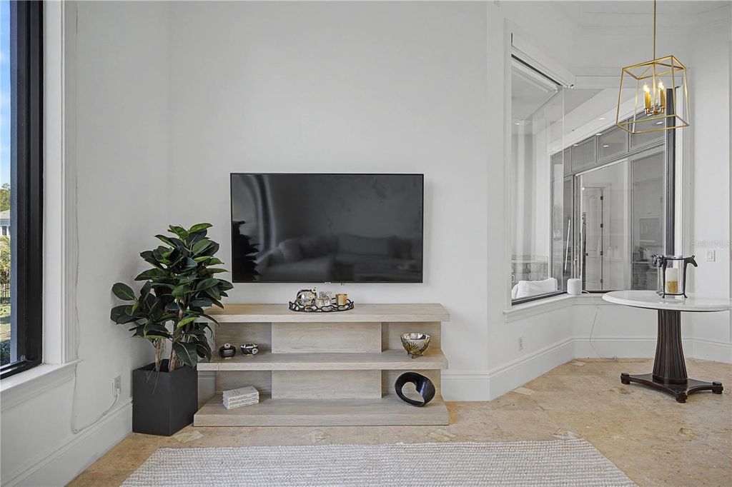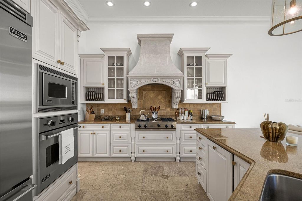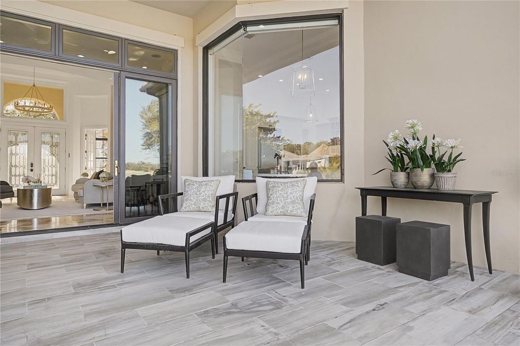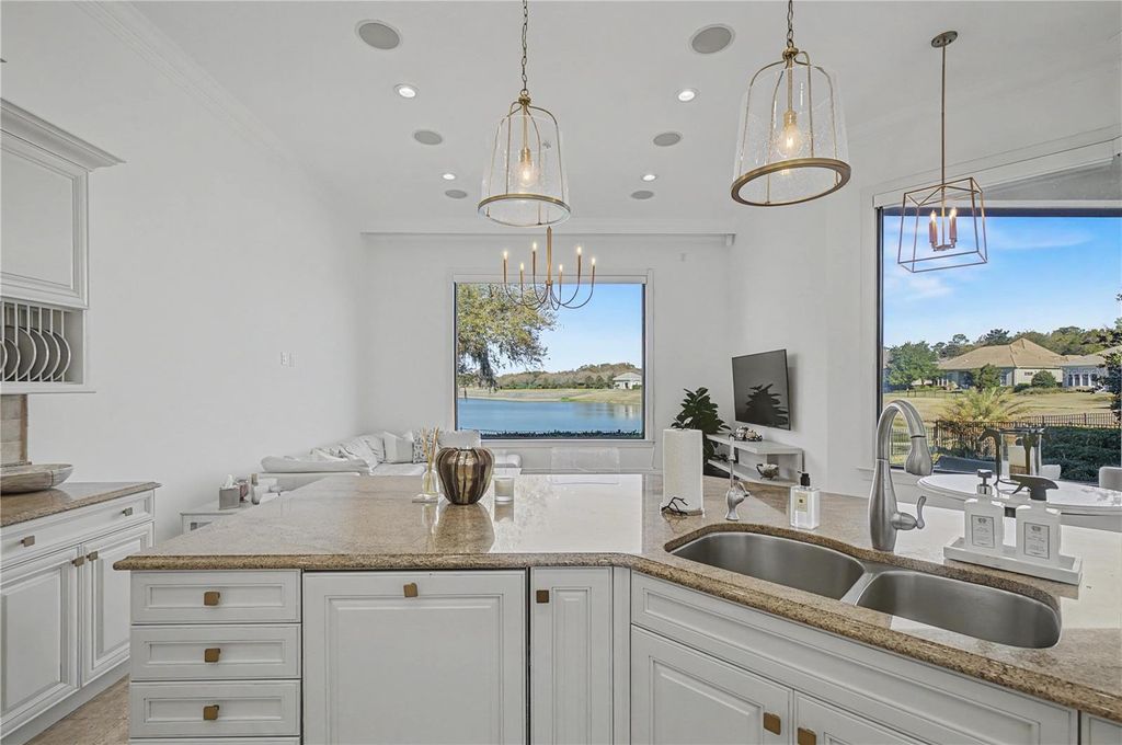 Located within the World-class community of Golden Ocala Golf & Equestrian Club, this light-filled residence offers a rare and breathtaking water view with abundant wildlife visible from nearly every room. Just steps from the Golden Ocala Spa and Tennis/Fitness Center, the home delivers an exceptional resort-style lifestyle in one of Ocala's most sought-after communities. Elegant finishes and refined architectural details define the interior, including spectacular onyx flooring, exquisite molding, and rich wood paneling throughout. The gourmet kitchen features Viking appliances with gas cooking and a striking molded stone range hood that mirrors the dramatic molded stone surround on the living room fireplace. The spacious primary suite is a serene retreat, highlighted by a grand bay window overlooking the water- a stunning backdrop for morning light and evening sunsets. Designed for both everyday comfort and upscale entertaining, the private patio showcases a built-in summer kitchen and tranquil water views. The yard is fenced for fur babies, offering both privacy and peace of mind. Ideally positioned just a golf cart ride from the World Equestrian Center, offering seamless access to Ocala's premier equestrian venue.