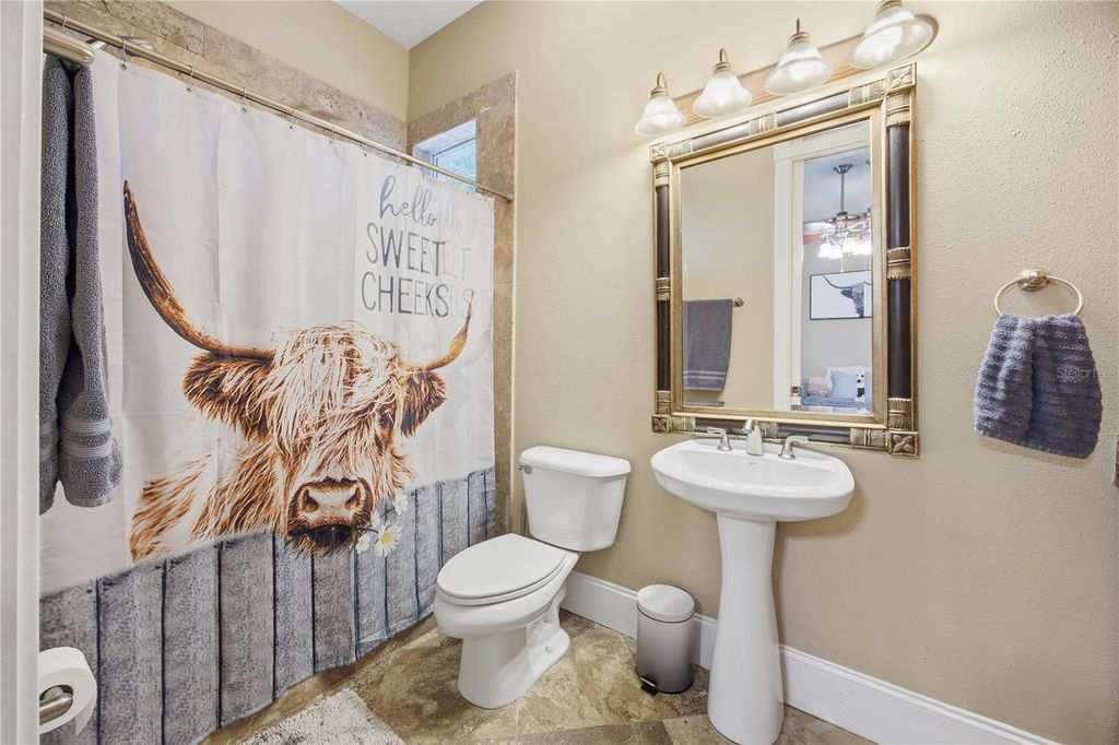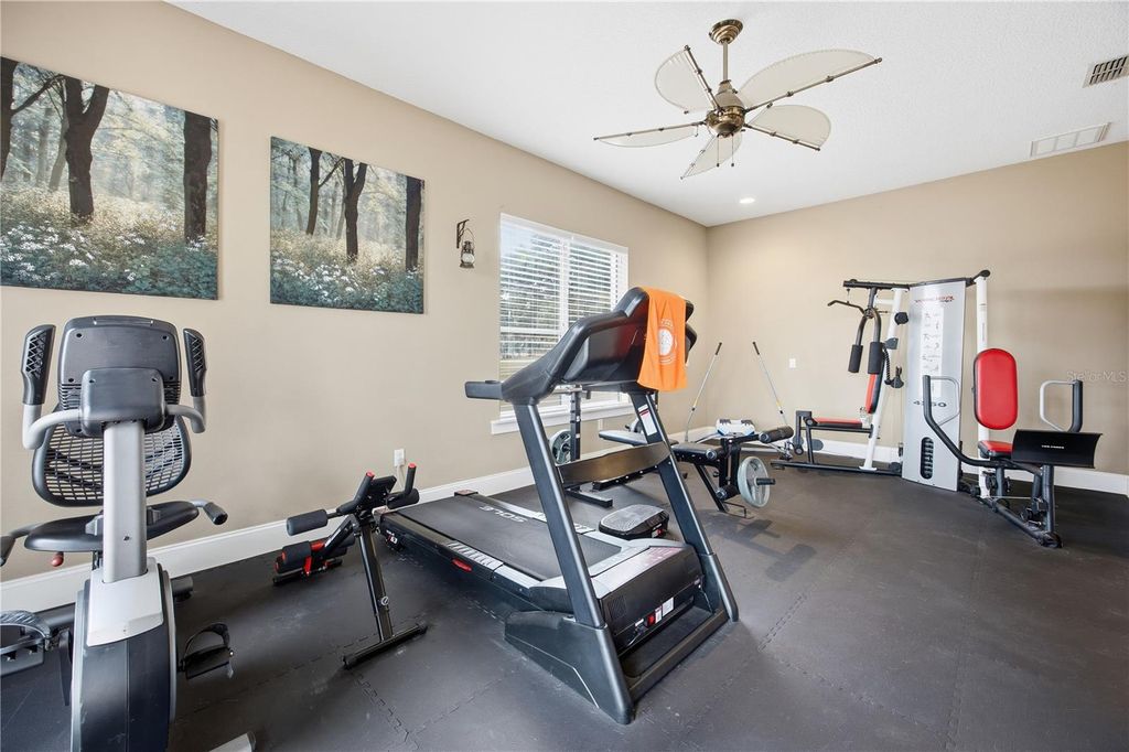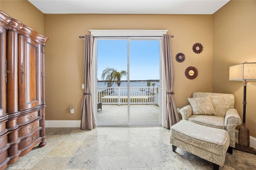 Welcome to refined lakefront living on Lake Weir. This custom-built 3 bedroom, 3 bath home offers over 3,200 square feet of thoughtfully designed space on an oversized lot with a white sandy beach on Lake Weir. Built by a builder for himself, the craftsmanship and functionality are evident in every detail - from the custom stonework to the highly livable floor plan. The two-story design captures water views from multiple vantage points, including a private second-story balcony overlooking the lake. The living room showcases soaring ceilings and a stunning stone fireplace, creating a warm yet elevated gathering space. The primary suite is a true retreat, complete with a dual-sided gas fireplace shared between the bedroom and spa-inspired bath - featuring a soaking tub framed by natural light and custom stone detailing. Custom stone walk in shower with wonderful natural light. The island kitchen is designed for both everyday living and entertaining. A true cook's kitchen featuring commercial gas range and hood, granite countertops, generous cabinet space and a huge pantry! Downstairs, a generous bonus room - currently used as a home gym - offers flexibility for a media room, office, or guest retreat. Outdoors is where the lifestyle unfolds: expansive patio space, a tiki hut for shaded entertaining, hot tub overlooking the water, and your own stretch of sandy shoreline. Framed by mature oaks and a winding driveway situated in a convenient location, this home offers privacy, functionality, and timeless lakefront living. Lake life. Elevated. Conveniently located near The Villages, Belleview and Ocala.