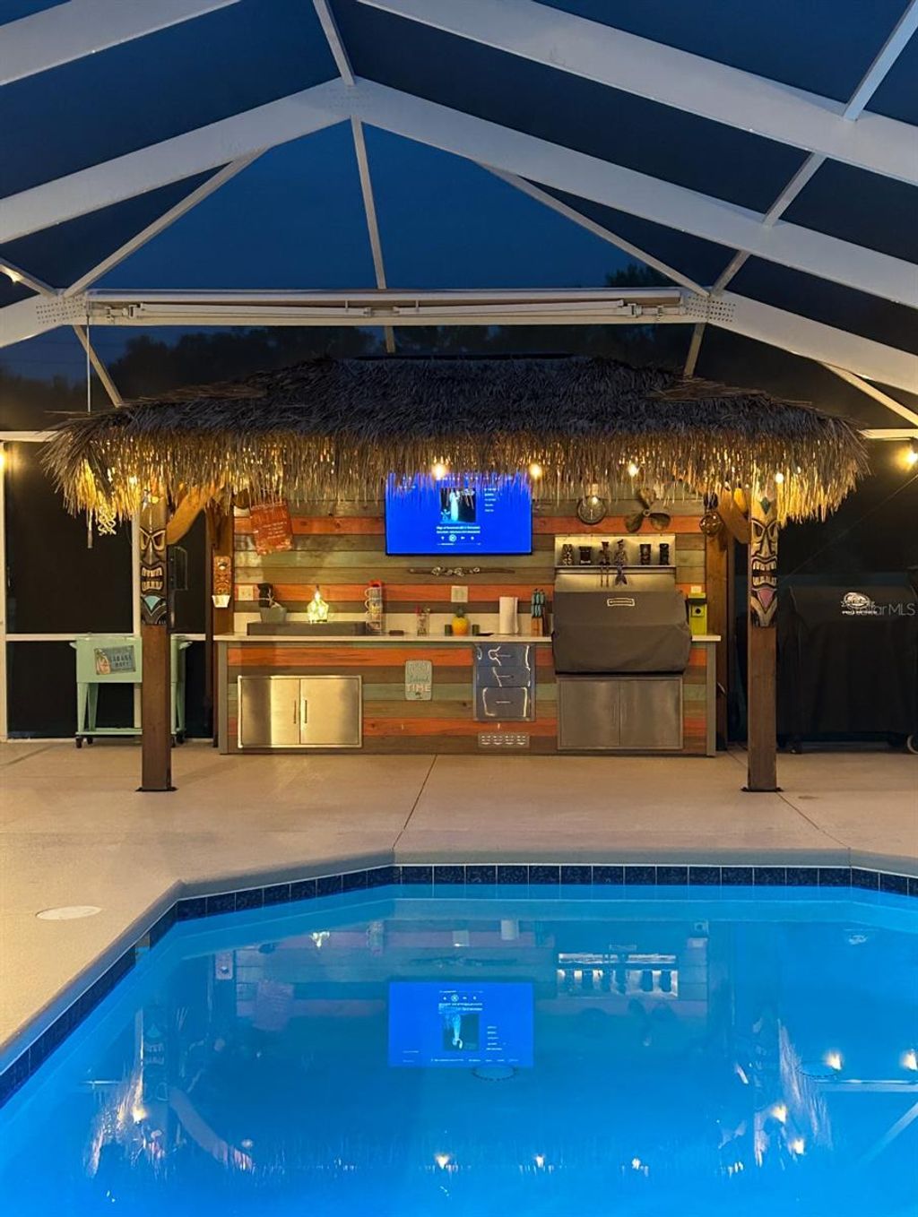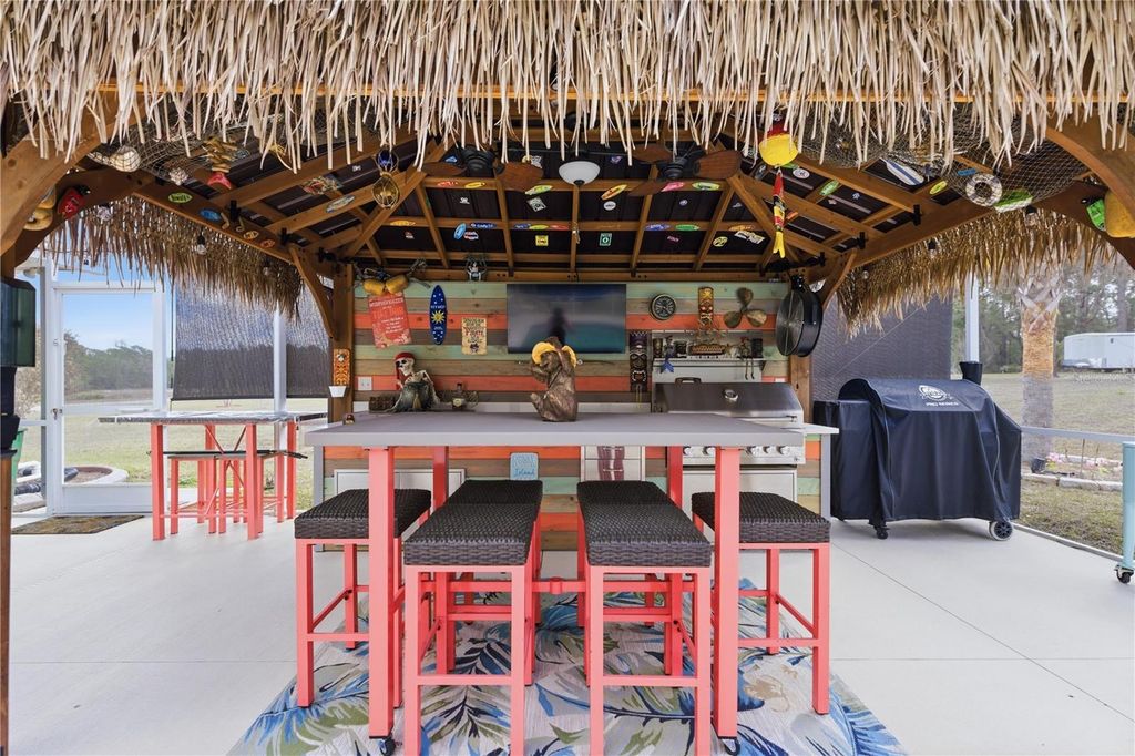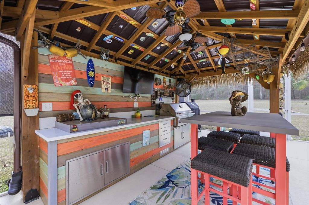 Looking for that unique property to call home? Unlike any property in Marion Oaks, it's always 5 o'clock at the Tiki Oasis. Situated in the back of the community these 1 acre lots are Marion Oaks hidden gems. Move-in ready and designed for exceptional indoor-outdoor living. Offering 3BR/2BA + den home with in inside laundry room, on a private fully usable 1-acre lot surrounded by mature moss-draped oaks and peaceful forest views. Upgrades include premium laminate flooring, baseboards & lighting, plus ceiling fans throughout complement a desirable split-bedroom layout. The spacious kitchen features granite countertops, kitchen island, farm sink with goose neck faucet, walk in pantry, and newer Samsung stainless steel appliances. The stove offers confection double oven with air fryer feature. The primary suite offers ample closet space, private toilet area, a large deep soaking tub, and large walk-in shower. Drainfield replaced January 2022 (front yard) and entire home surge protection from SECO**Step outside to your private retreat featuring a screened pool and expansive lanai, outdoor fire pit, water feature, and a fully equipped tiki-style outdoor kitchen with granite counters, 4-burner gas stove, KitchenAid grill, TV, and roll-down shades, perfect for entertaining. ** A fully insulated 26x40 custom shop with AC, LED lighting, workbenches, and oversized pull-through doors provides incredible space for hobbies, storage, or RV/boat parking. Doors are 10 ft tall by 12 ft wide. Additional highlights include a whole-house generator, Starlink, ADT security system (owned), attached 2-car garage, indoor laundry, and a shaded tiki-style dog cabana area. A rare combination of privacy, luxury upgrades, and versatile space. No backyard neighbors. **This home is located in the back of Marion Oaks with minimum 1 acre lots, which have different restrictions from the front of the community, giving you more flexibility. You're just minutes from shopping and retail on Marion Oaks Blvd, and within 20 minutes of the World Equestrian Center, Florida Horse Park, and Sholom Park, where residents enjoy world-class events, horse shows, and scenic outdoor trails. *** The Marion Oaks Recreation & Fitness Center is minutes away, offering sports courts, playgrounds, and community activities for all ages. Enjoy access to a splash pad, pickleball, basketball, volleyball, and tennis courts, a fitness center, a community center with meeting rooms, and a public library, with a voluntary $35/year membership. *** Healthcare and convenience are close at hand with AdventHealth TimberRidge ER less than 10 minutes away, and easy access to Interstate 75 and SR-200, providing quick commutes to Ocala's downtown, Gainesville, The Villages, Tampa, or Orlando. *** Nearby shopping includes Publix, Walmart, Winn-Dixie, Aldi, and various dining options,. Marion Oaks Elementary, Horizon Academy Middle, and West Port High (rezoning August 2026) make this area ideal for families. **Whether you're a first-time buyer, investor, or relocating to Central Florida, this home offers an unbeatable combination of location, quality, and value. The Marion Oaks community continues to expand with new retail, parks, and infrastructure, making it one of the most promising investment areas in Ocala's horse country. Schedule your private showing today and experience this beautiful new home, where comfort, modern design, and convenience come together perfectly in the heart of Southwest Ocala.