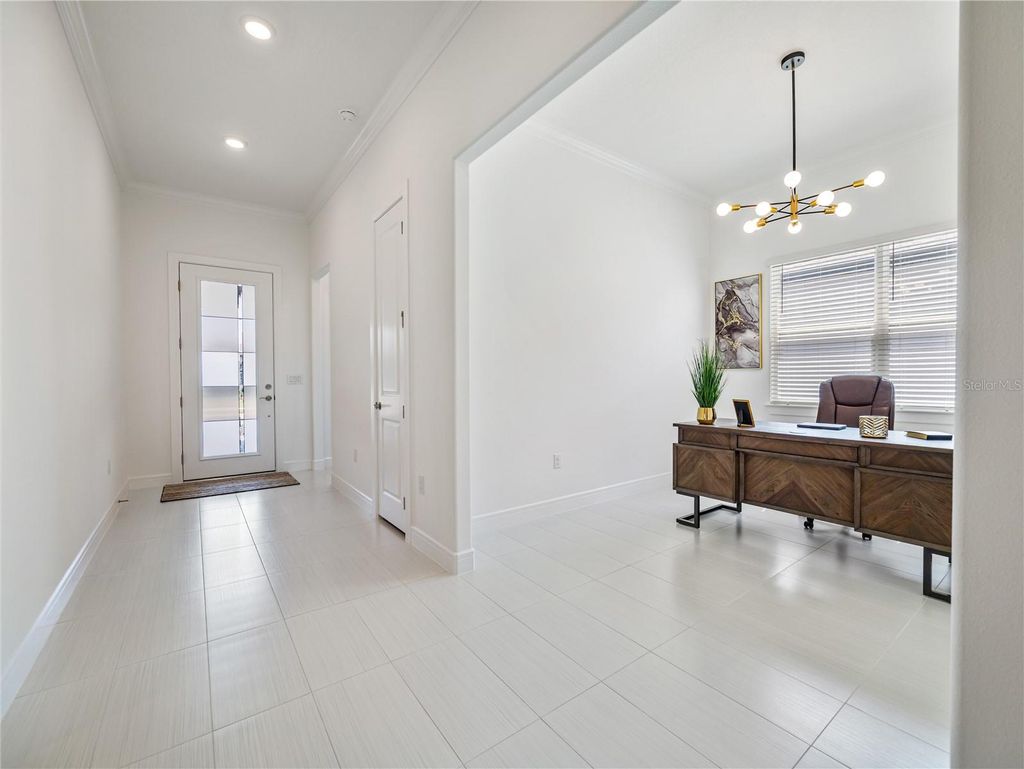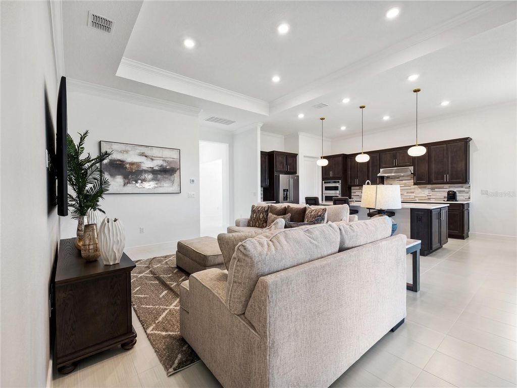 Welcome to this stunning Prestige model located in the highly desirable community of Del Webb Stone Creek, offering beautiful lake and golf course views along with exceptional upgrades throughout. Only one year old, this beautifully designed home blends modern luxury with thoughtful details and comfortable everyday living. From the moment you arrive, the paver driveway and paver entry create a welcoming first impression, enhanced by custom landscaping that adds to the home's curb appeal. Step through the glass inset front door into a bright and elegant interior where crown molding throughout provides a refined finish. The spacious living area is highlighted by a tray ceiling, creating an open and inviting atmosphere perfect for relaxing or entertaining. At the heart of the home is the gourmet kitchen, designed to impress with quartz countertops, upgraded cabinetry, stylish pendant lighting, and upgraded stainless steel KitchenAid appliances. The open layout allows the kitchen, dining, and living areas to flow seamlessly together, making it ideal for both everyday living and hosting guests. This thoughtfully designed home features 2 bedrooms, 2 full bathrooms, and a convenient half bath, along with a versatile office with a closet that can easily function as a guest room or additional living space. The primary suite offers a private retreat with a tray ceiling and a spa-inspired bathroom featuring a tiled walk-in shower with a glass enclosure. The secondary bedroom includes its own ensuite bath with a tiled shower and glass doors, providing comfort and privacy for visitors. Additional upgrades include a laundry room with cabinetry and a utility sink for added convenience. Step outside to enjoy Florida living at its best on the screened-in lanai overlooking both the lake and golf course, or relax on the paver back patio, the perfect place to unwind and take in the peaceful views. Residents of Del Webb Stone Creek enjoy resort-style amenities, including a championship 18-hole golf course, resort-style outdoor pool and indoor pool, a state-of-the-art fitness center and spa, tennis, pickleball, and bocce courts, a softball field, scenic walking and biking trails, and a 60,000-square-foot clubhouse complex featuring a grand ballroom, billiards, arts and crafts studios, and numerous clubs and activities. The community also offers an onsite restaurant and grille, golf pro shop, and a full-time lifestyle director who coordinates events and social gatherings throughout the year. This exceptional home offers the perfect opportunity to enjoy luxury living with both lake and golf course views in one of Ocala's premier resort-style communities.