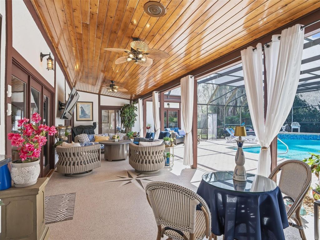 Beautifully updated and renovated traditional Tudor style residence in the exclusive guard-gated community of Laurel Run - just minutes from all major conveniences. Situated in the back of the community on a spacious, elevated lot, the home welcomes you with a circular driveway, mature landscaping and covered front porch finished with brick flooring, stained wood ceiling and stunning leaded glass surrounding the door with stained glass. The foyer features rich hardwood flooring which carries throughout the first floor. The expansive living space offers gorgeous tongue and groove wood vaulted ceiling with stained glass clerestory window, floor to ceiling brick fireplace with gas logs on remote, a wet bar with quartzite countertops, ice maker and sink complete with glass washer. Two sets of doors lead from the living space to the outdoor oasis boasting an expansive paver deck leading to the recently refinished oversized saltwater pool - all recently re-screened. The kitchen has been completely renovated with all new cabinetry, quartz countertops, stainless steel appliances including built-in oven and wine cooler, plus additional built-in storage in the breakfast nook. Adjacent is the formal dining room and beyond, across the foyer, is the large game room that is the perfect entertainment space complete with pool table included! The primary suite is sure to impress offering access to the pool deck, a walk-in closet with custom built-ins, and completely renovated ensuite bathroom with dual sink vanity, walk-in shower and dedicated washer and dryer. On the opposite side of the home, the junior suite - accessible through a hidden door making it inconspicuous while entertaining - also offers pool access, a full ensuite bathroom and custom walk-in closet. Upstairs, you will find all new carpeting with two additional spacious bedrooms with walk-in closets and a jack & jill style bath with dual sinks and separate water closet with walk-in shower and separate tub. At the end of the hallway upstairs is a custom wood built-in nook - a perfect retreat for reading and relaxing. There is also a large laundry room with additional full-size refrigerator, attached oversized 2-car garage with storage, EV charging station, shed with workshop, generator, fully fenced backyard and well for irrigation. In addition to the cosmetic updates, the major systems have all been updated including a new roof in 2022 and newer HVACs in 2024. Full list of updates and features available. Please enjoy the attached video and 3D tours. Motivated seller due to job relocation.