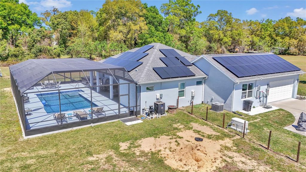 5+ Acre Estate with Heated Pool, Mother-in-Law Suite & Modern Amenities - Minutes from Downtown Ocala! Discover the perfect combination of luxury, space, and convenience in this breathtaking 2,400+ SqFt home. This meticulously maintained estate offers everything you need for refined country living with modern comforts. Experience an expansive open-concept living, dining, and kitchen area with soaring 10-foot crown molded ceilings, creating a bright and airy atmosphere. This custom design offers both elegance and functionality, perfect for entertaining or everyday luxury. A modern chef's kitchen at its heart, a grand sit-in island serves as both a stylish centerpiece and a practical workspace, featuring cabinet storage underneath"”perfect for keeping cookware, appliances, and pantry essentials neatly tucked away. The sleek marble countertops add a touch of sophistication, their smooth veining complementing the high-end finishes throughout the space. For those who love to cook, the double built-in wall ovens allow the convenience of preparing multiple dishes at once, making meal prep effortless for family dinners or large gatherings. The home also includes a built-in speaker and surround sound system, allowing you to enjoy high-quality audio throughout the space. 3 spacious bedrooms and 3 full bathrooms, including a private Mother-in-Law suite"”ideal for guests or multi-generational living. Primary suite offers tiled flooring, and range to fit a full king sized bedroom set, complimented by dual walk-in closets. The master en suite is a true retreat, featuring a 6-ft soaking tub for ultimate relaxation, tiled stand up shower, and double sink vanity. The finished garage provides ample storage with built-in cabinets, shelving and tiled flooring, offering a clean and organized space for your tools, toys, or hobby setup. Outside, enjoy your private 16x32 in-ground heated pool with an extended concrete patio surrounding, and spa like hot tub. The perfect lanai for year-round swimming and entertaining. The fully fenced property features an automatic gated entry for added security and privacy, along with a security system and cameras for peace of mind. Enjoy 5 acres of versatile land, perfect for outdoor entertaining, recreational activities, gardening, future expansion, and plenty of established pasture for your horses. This energy-efficient home is powered by solar panels, keeping utility costs low, while a tankless water heater ensures endless hot water. As an added bonus, the seller is offering the option to purchase the home fully furnished, so you can move in and start enjoying your new oasis immediately! All located just 15 minutes from downtown Ocala, less than 30 minutes from the World Equestrian Center and within a drives reach of Ocala national park / recreational areas. Don't miss this incredible opportunity to own a truly one-of-a-kind property in a prime Ocala location.