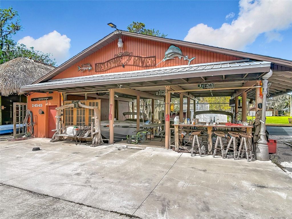 Your own personal Margaritaville in the heart of Astor with almost 300 feet of total water frontage and direct access to the St. Johns River. This waterfront property is for those who love the river lifestyle, featuring three covered boat lifts for up to 30', a boathouse, and plenty of space for mooring multiple boats and watercraft. The property is fully set up for outdoor living and entertaining with a wraparound porch overlooking the water, tiki-style gazebo, firepit area, and a fish cleaning station, perfect after a day of boating or fishing. A covered RV port with 50amp hookup, and expansive parking area provide room for cars, trucks, boats, trailers, and all your recreational toys. Inside, the home offers a comfortable layout and includes a home bar, creating a great space to relax and entertain family and friends. Whether you're looking for a full-time waterfront residence, weekend retreat, or riverfront getaway, this property offers the space, waterfront access, and amenities to enjoy the best of Florida river living.