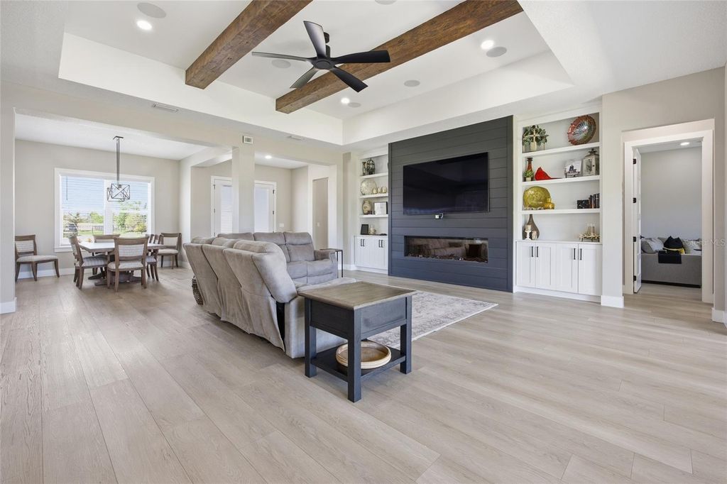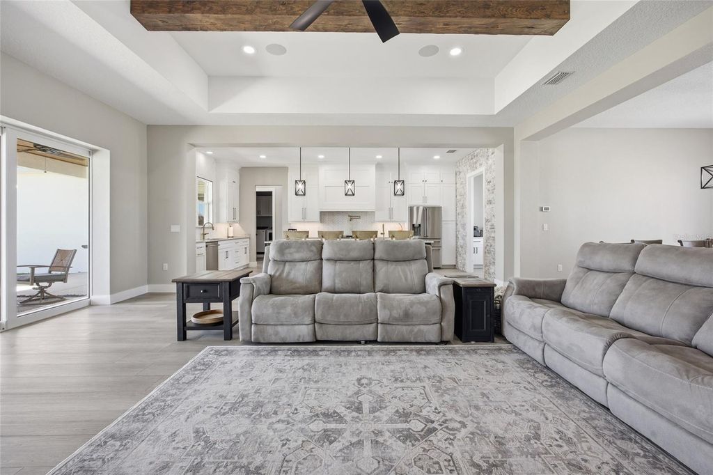 Why wait to custom build when this one already has it all? Built by the owner with exceptional attention to detail, this one-of-a-kind home on a half-acre lot in a gated community is packed with the high-end features, smart technology, and custom touches buyers dream about. Built with stainless steel beams and spray foam insulation, this home offers durability, energy efficiency, and comfort throughout, including the garage. From the moment you walk in, you'll notice this is not your average home. The living room is a true showstopper, featuring custom ceiling beams with a wood-wrapped finish over a steel core, creating a bold, modern look, along with surround sound and an electric fireplace. Throughout the home, you'll find Alexa hubs in every room, app- and voice-controlled lighting, and motion-sensor lighting in the laundry room. The primary suite feels like a retreat with cathedral ceilings and tongue-and-groove detail, a spa-inspired bath with a large walk-in shower, soaking tub, shower lighting, built-in outlets in the cabinets and drawers, and an oversized walk-in closet. Outside, the features continue with a fully fenced yard, outdoor lighting, outdoor shower already installed for a future pool, setup for an outdoor kitchen, and beautiful tongue-and-groove ceilings on both the front and back porches. Additional highlights include a 4-zone AC system allowing customized temperature control throughout the home, gas dryer, whole-house gas generator, sliding pocket doors, washer and dryer included, underground utilities for added peace of mind during Florida storm season, neighborhood park, and well irrigation. Why go through the hassle of custom building when this fully loaded custom home in a gated community is already waiting for you? Come see it for yourself.