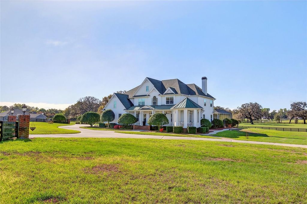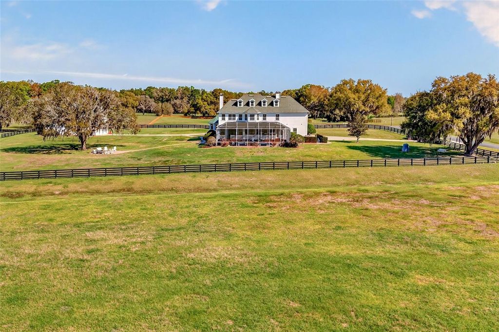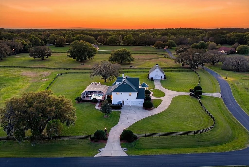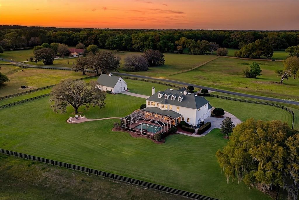 Exquisitely renovated and set on nearly 14 acres on 2 contiguous parcels in the highly desirable Greenway Crossing community, this exceptional estate delivers the rare combination of timeless Southern architecture, modern luxury finishes, and true estate-scale living"”just minutes from the Santos Trail system and the heart of Ocala's premier horse country. Greeted by custom iron Milano doors on the southern charm front porch, the home has been completely reimagined with a designer's eye with flooring throughout showcases a curated blend of Thassos & Nero Marquina marble, French limestone, and stunning Herringbone White Oak, creating a layered, high-end aesthetic that is both bold and timeless. The layout of the home surrounded in wrap around porches is perfect for families and entertaining with multiple spaces to enjoy watching movies, eating and or lounging. The kitchen is a true showpiece"”designed for both entertaining and everyday luxury"”featuring all brand new gunmetal DACOR appliances including a double sub fridge, two ovens, 4 burner gas cooktop with griddle, an ultra lux wine dispenser, elite cabinetry, quartz countertops, gold fixtures / lighting and a custom butcher block island that anchors the space with warmth and functionality overlooking the sparkling pool. Additional upgrades include Lutron smart lighting controls, integrated LED lighting, HEOS whole-home audio system, custom Milano iron doors, Buster & Punch hardware, and designer Graham & Brown wallpaper accents. Outdoor living is equally impressive, with a screened pool and spa equipped with Pentair ScreenLogic controls, expansive brick paver entertaining areas, and covered spaces designed to capture the peaceful views of the surrounding acreage. The property is fully fenced with classic black board fencing and adorned with mature oak trees, offering open pasture and a detached oversized Kentucky style barn currently set up as a gym with full Bath and 1500 Sq. ft. second story that could be finished with versatile use including a very simple transition to a European 6 stall Stables or recreational use. Whether you're hosting under the oaks, enjoying quiet mornings on the wraparound porch, or entertaining poolside as the sun sets over the pasture"”this property doesn't just check boxes... it creates moments and a lifestyle that's getting harder to find and impossible to recreate at this level. The sunsets are INCREDIBLE!