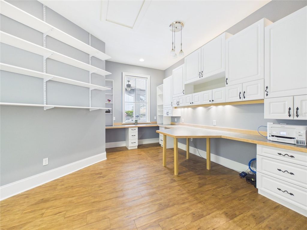 One or more photo(s) has been virtually staged. First time on the market "¢ Original owner home "¢ 1.5 acre Ocala property "¢ Screen-enclosed beach-entry pool "¢ RV/boat storage "¢ No HOA Offered for the first time since it was built in 2004, this original-owner home is set on approximately 1.50 acres on a quiet one-lane cul-de-sac road in southwest Ocala with no HOA. A private asphalt driveway leads to the home, creating a welcoming approach across the spacious property. The residence offers approximately 3,980 square feet of living space designed for both everyday comfort and entertaining. Inside, the main living areas feature hardwood flooring, decorative tray and coffer ceilings, smooth-finish drywall, upgraded baseboards, and large windows overlooking the outdoor living spaces. The living room centers around a custom stone wood-burning fireplace and a large reclaimed wood entertainment center crafted from Tennessee River wood. The kitchen provides generous workspace and storage with granite countertops, a large center island, stainless steel appliances, double wall ovens, and upgraded appliances including a raised dishwasher. A breakfast nook with built-in bench seating sits just off the kitchen, while a formal dining room offers additional space for gatherings and entertaining. Living areas open directly to the expansive screened outdoor living space. The pool enclosure features a beach-entry pool with waterfall, turtle mosaics, color-changing lighting system, and a recently remodeled paver pool deck. Covered patio areas and an outdoor summer kitchen with stonework, granite countertops, grill, and televisions create an ideal space for outdoor dining and entertaining. The main level includes the primary living areas with hardwood flooring and no carpet throughout the home. An upstairs flex room with closet provides additional space suitable for an office, recreation room, or guest accommodations. Extensive upgrades and improvements include a new roof, new HVAC unit, new well, new water heaters, updated plumbing lines, new flooring, fresh interior and exterior paint, and a remodeled pool and deck area. The home also includes Icynene insulation in the walk-in attic, upgraded security system with cameras and recording features, decorative lighting, and custom window seating with storage. Outdoor features extend beyond the pool area with upgraded landscaping, irrigation system, decorative exterior lighting, private gated entry and exit, a newly paved private road, and multiple functional outbuildings. The property includes a boat/RV pole barn with approximately 750 square feet of covered space and a 30-amp RV hookup. Additional improvements include an attached two-car garage with upgraded epoxy flooring and a separate carport structure. Located in southwest Ocala with convenient access to equestrian venues, shopping, and major roadways throughout the Ocala area. Virtual tour available to explore the home layout and outdoor spaces in greater detail. This stunning home has been meticulously cared for and is a MUST SEE in person!