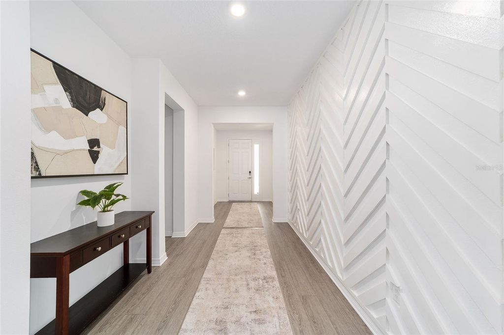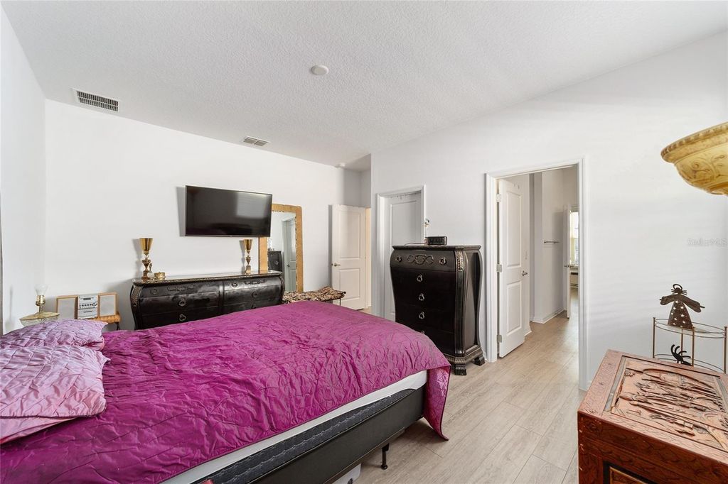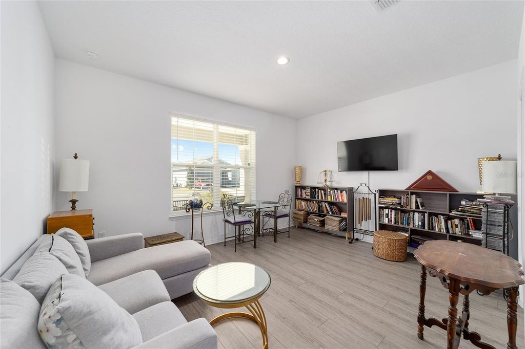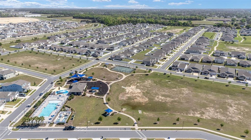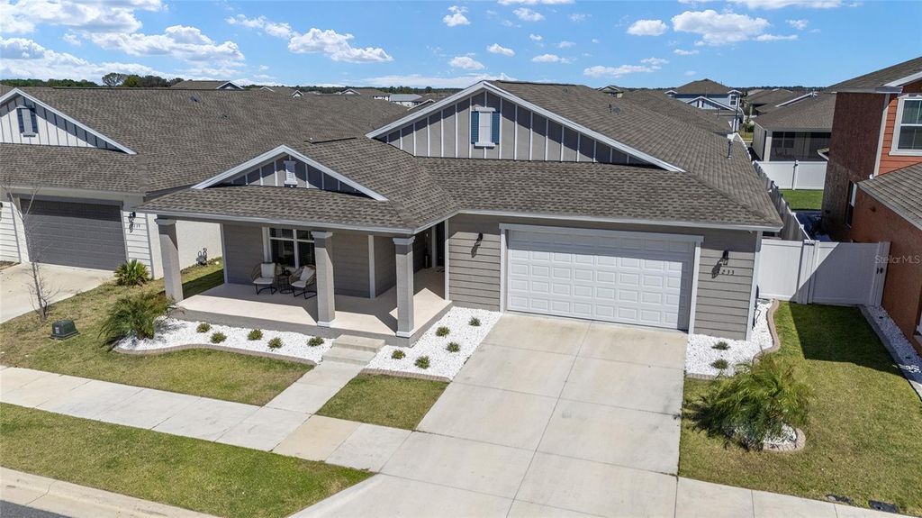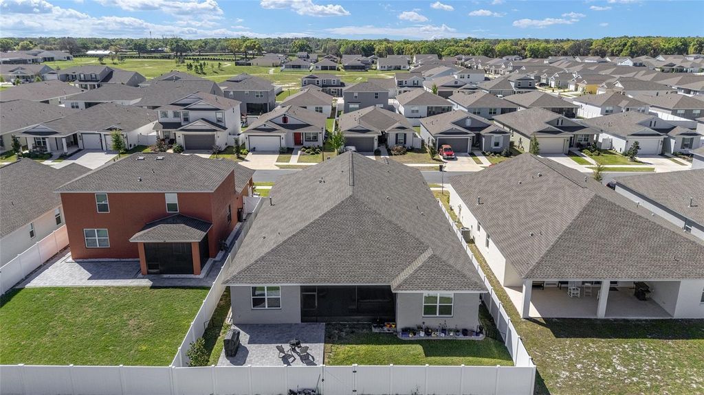 Check out this lovely Larkspur model home! This perfectly appointed single-story home has it all! You will fall in love with the functionality of this 4 bedroom, 3 bath, 3 car garage home, complete WITH flex room, formal dining room and laundry suite... washer and dryer do convey! There's even a bonus "nest" next to the pantry. From the outside you will notice an inviting covered front porch and easy to care for updated landscaping. The backyard is fenced and the brick paver patio is ready for your next BBQ- already plumbed for a gas grill. The covered lanai has been screened and the floor is epoxy coated, elevating this outdoor space so that it acts as an extension of the main home. The inside of this beautiful home shows just like a model... modern and bright with clean lines, neutral colors and LVP throughout. This home boasts many high-end upgrades including, upgraded staggered kitchen cabinetry, stainless steel kitchen appliances, and in the living room you'll notice the custom feature wall with electric fireplace and shelving. There are also custom feature walls in the foyer and formal dining room, custom closet system in the master bedroom, and additionally, they have installed a whole-house water filtration system and epoxied the garage floor. Why build when it's all here... skip the hassle of building and spend zero time in a construction zone. Calesa Township is located convenient to schools, family or date night entertainment and shopping. Check out the near-by Rainbow Springs State Park and The World Equestrian Center. Only a ~45min drive to the University of Florida, Shands Hospital and Gainesville Regional Airport. Calesa family's enjoy low HOA fees and resort style amenities including an immersive trail system with connecting tunnels, yoga pavilion, skate park and pump track, heated pool, covered pavilions, BBQ grills, gazebos, spray-pad, play-ground, full-size basketball court, and outdoor fitness equipment. So many reasons to check out this gorgeous home schedule your private showing today!