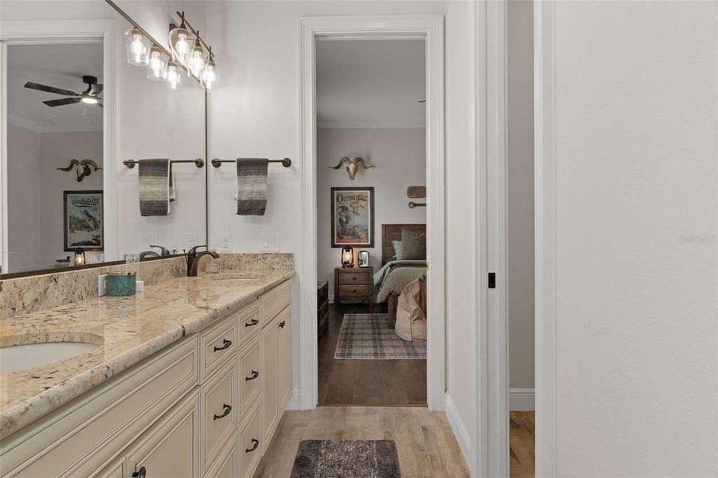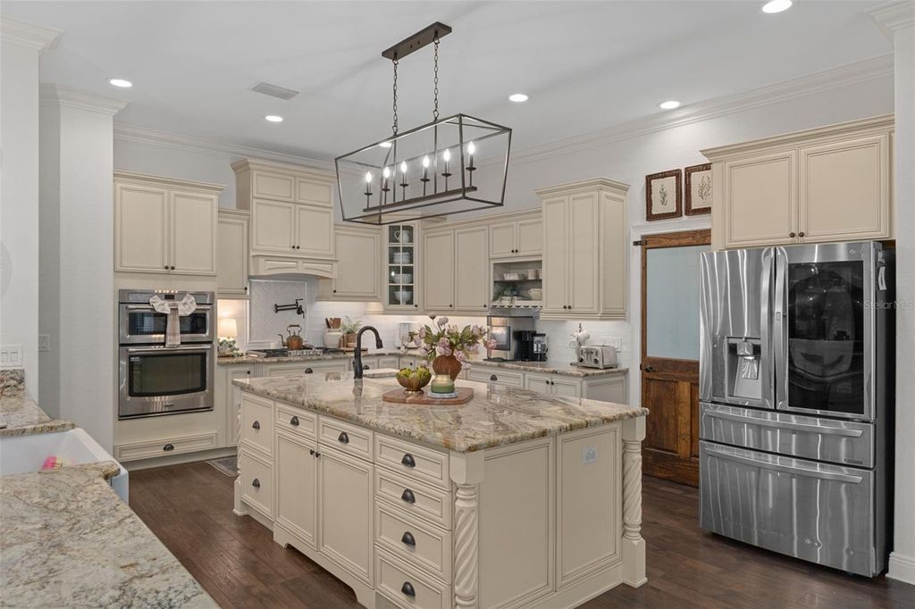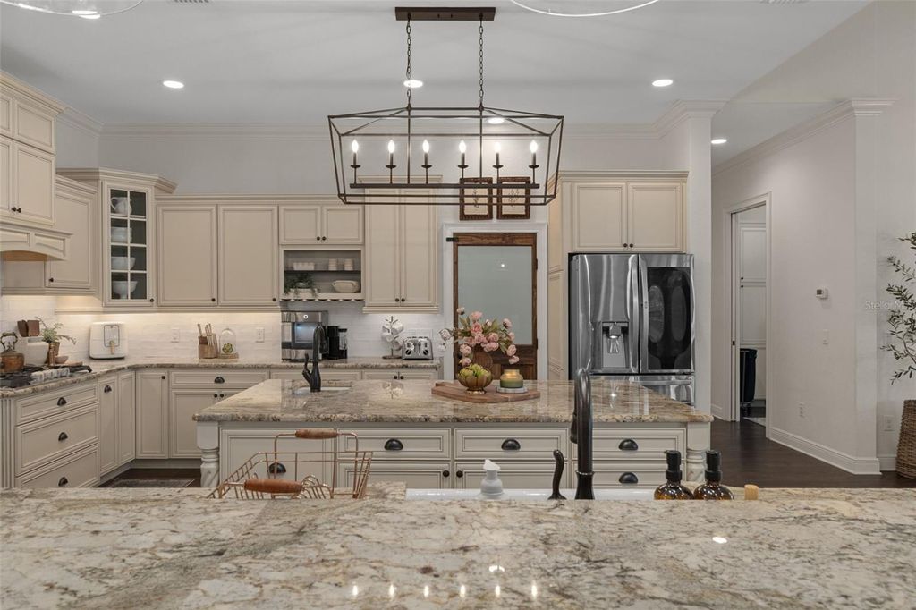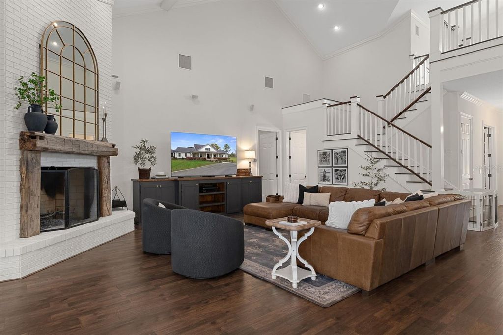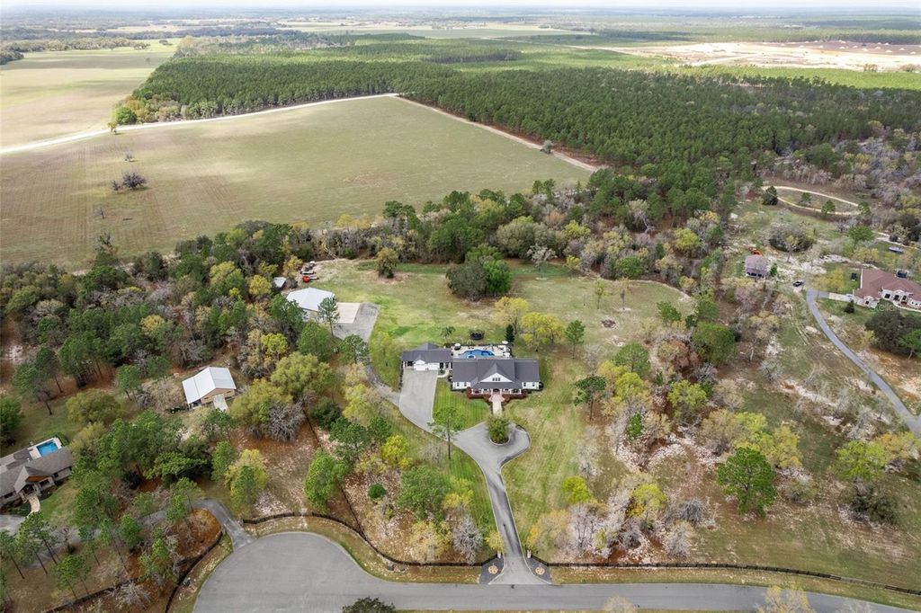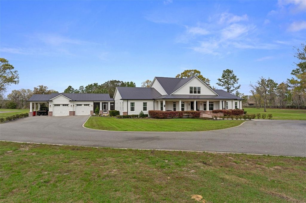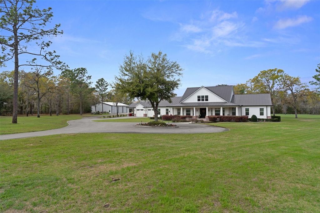 Welcome to an exceptional private farmhouse estate in the prestigious Preserves at Oak Hill"”one of Central Florida's premier gated equestrian communities, offering scenic riding trails, community stables, and surrounded by like-kind luxury farms. Situated on 8.17 fully fenced and privately gated acres at the end of a quiet cul-de-sac, this stunning farmhouse estate offers the perfect balance of refined living, functionality, and peaceful country lifestyle"”just minutes from I-75, the Florida Turnpike, The Villages, and a short drive to the World Equestrian Center. The recently updated residence offers 4,647 square feet of living space and over 7,700 square feet under roof, showcasing soaring ceilings, rich wood, Luxury Vinyl plank flooring, and a striking floor-to-ceiling brick fireplace that anchors the open-concept living area. Natural light fills the home, creating a warm yet elevated farmhouse feel throughout affording great views at every point. The chef's kitchen is fully appointed with granite countertops, custom cabinetry, an expansive island, and a walk-in pantry, seamlessly connecting the living and dining spaces for both everyday comfort and effortless entertaining. A dedicated office and an upstairs loft featuring bonus room provide flexible living options, while the 4 bedroom layout is complemented by 4 full baths and a half bath, including a Jack-and-Jill suite for added functionality and comfy guest room with full bathroom. The primary suite is a true retreat, featuring a spacious custom walk-in closet and a private walk-in safe room with custom wood interior suitable for safe space for guns or valuables and/or personal safety. The primary bathroom offers a spa-like experience with an oversized walk-in shower, dual shower heads, and quality finishes designed for both comfort and style. The exterior showcases custom brickwork with white mortar joints, creating a distinctive modern farmhouse aesthetic that sets this home apart. The charming front porch and entry provide a warm and inviting first impression, perfectly capturing the essence of elevated country living and ideal serene relaxation. Step outside and experience a resort-style setting designed for both relaxation and entertaining. The custom pool features a beach entry, water slide, and spa, all surrounded by expansive paver decking and multiple seating areas. A dedicated pool bath adds convenience, while the outdoor kitchen and bar, along with a covered lanai showcasing a custom wood ceiling, roll-down screens, and wood-burning fireplace, create a seamless indoor-outdoor living experience. In the evening, the extensive landscape lighting transforms the property into a stunning private retreat. An integrated indoor and outdoor Bose sound system enhances the atmosphere throughout the home and outdoor spaces. The impressive 3,480 square foot barn and workshop offers epoxy floors, built-in workbenches, loft storage, and three oversized bay doors, providing ample space for equipment, recreational vehicles, or farm use. For added convenience 500 gallon gasoline tank on site. Surrounded by expansive farmland and estate properties, this community offers a rare opportunity to enjoy privacy, luxury, and an authentic equestrian lifestyle in a setting that feels worlds away, yet remains close to everything.
