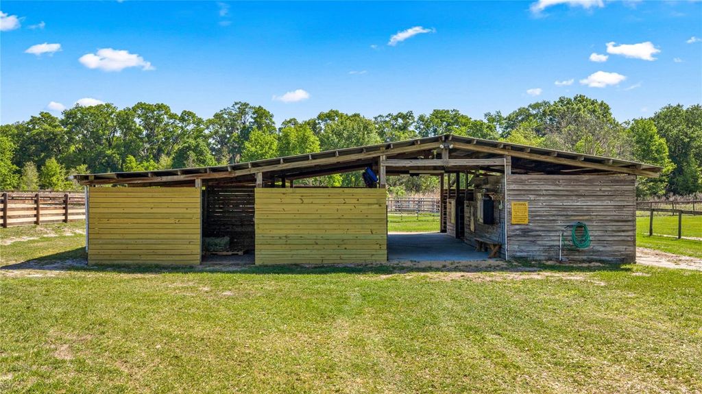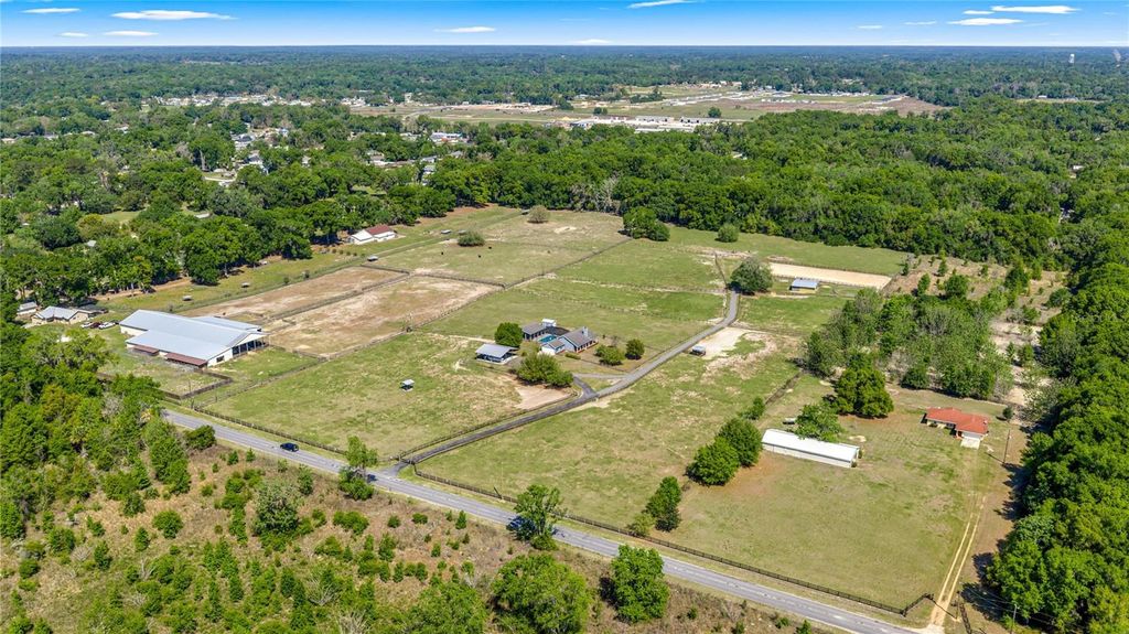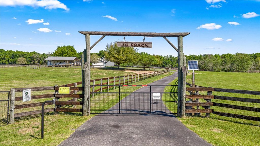 Welcome to JG Ranch, 15 +/- acres conveniently located centralized to Ocala, Lady Lake and The Villages. Enter the paved and gated drive to this cozy three bedroom, two bathroom split plan ranch house with wood burning fireplace. The house sits elevated on the property and offers lovely views from every window. Sliding doors off the kitchen take you to the screened enclosed outdoor living space offering a sparkling saltwater pool with Baja shelf and hot tub flanked by a pool house with full bathroom, summer kitchen, patio and outdoor shower. Toys, gooseneck horse trailer, dually and boat storage are no problem with the 36x36 pole barn and there's an additional 12x16 hobby shed with A/C mini-split unit. The property is fenced and cross fenced, with 6 paddocks lining the asphalt drive to the barn. The center aisle wood frame barn features 5-(12x12) stalls with tack room, feed room and equipment storage. There is a metal panel round pen and 260 x 120 well drained field dirt over clay base arena where many Performance Horse Futurity prospects have been started and trained. Updates include new roof 2018 and HVAC 2017. Approximately 15 minutes to the Florida Horse Park, 30 minutes to WEC, 12-15 minutes to the turnpike/I-75, and 10 minutes to the Villages for restaurants, shopping and entertainment.