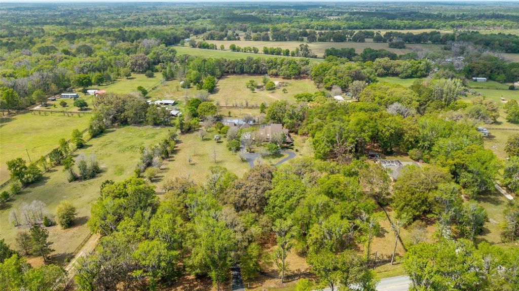Amazing pool home with Guest House sitting on 12 luscious landscaped acres and 5/5! 2 Car Garage Block Home featuring 4,644 plus Sq. Ft. Zoned A1 This is such a beautiful piece with Formal Dining and Living Room with beautiful gas fireplace, and bonus room as a den/library or office and indoor laundry. The interior features coffered ceilings, crown molding, fans, eat in kitchen solid surface counters, wood cabinets and walk in closets. Entertain in the kitchen which features all the bells and whistles for great meals. The heated salt water pool is 39 x 22 pool with inground lighting and screen enclosure. This home features a patio and covered front and side porch with rain gutters and even a tennis court! Property features a barn apartment bathroom. 20 Minutes to the vibrant city life of Gainesville, to Ocala's thriving downtown, and equally close to the world-class World Equestrian Center. Whether your an equestrian or you're seeking a serene country estate with beautiful amenities this farm has it all! Drive through the gate down the paved drive and you'll find mature trees and landscaping including fruit bearing pecan, orange, lemon and banana trees. Grand entrance into the living area with high ceilings, and tons of light showering the home with warmth and natural lighting. Clean lines and design are a winning combination. Not to mention the gourmet chef's kitchen that flows seamlessly to the outdoor living area. This home is classic elegance for entertaining and relaxing. This farm also features a lovely 2/2 guest cottage fully equipped. The barn also hosts another 1/1 with living accommodations as well and plenty of storage and room for stalls. It is breathtaking to behold. Call for you private showing today.