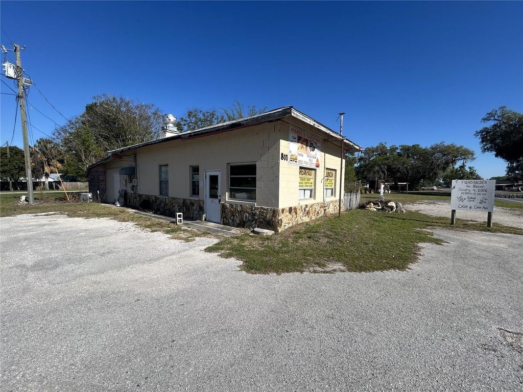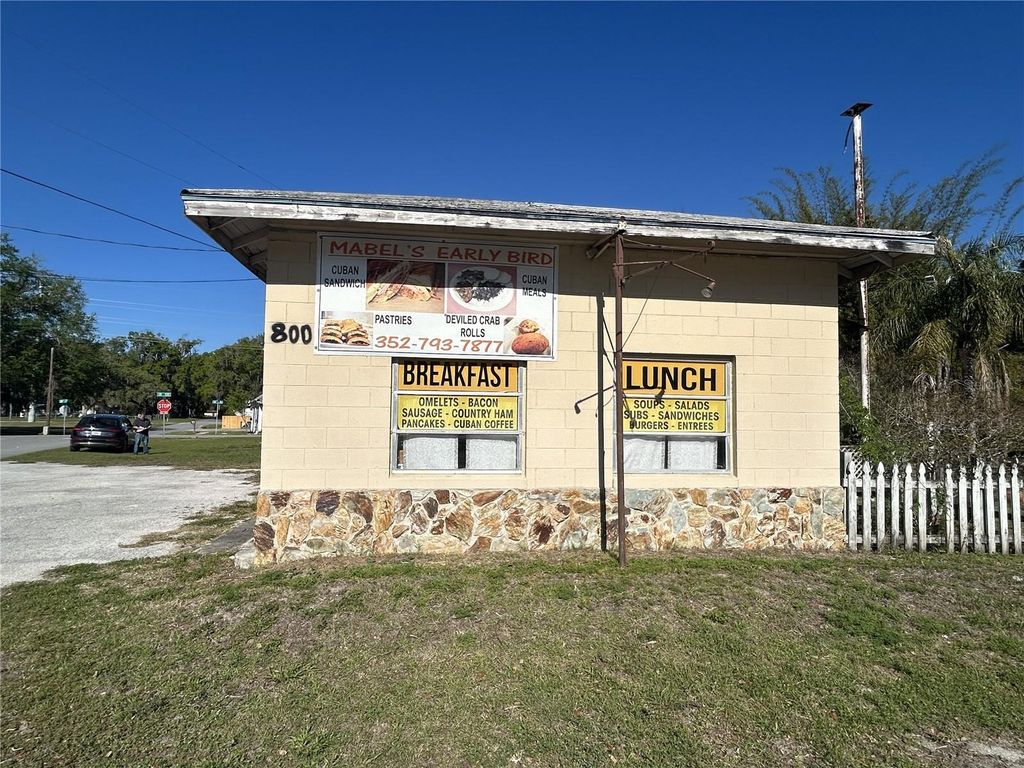 Here's your opportunity to own a piece of Sumterville history! 800 US 301 not only gets a HUGE amount of daily traffic, this mixed-use lot in the early 1900's was the Sumter Couty Courthouse, before being moved to Bushnell. The concrete block building has been used as a popular restaurant for the last 50 years. Across the street from Sumterville Community Building and Park, we are offering a whole city block. There is lots of restaurant equipment included. There's even a little one bedroom, one bath building on the property, that has no value but can be used while renovations are being done to your new business. Threequarters of an acre, historic location, amazing business opportunity and priced to sell fast. Come check it out before its gone! Schedule your personal tour today.