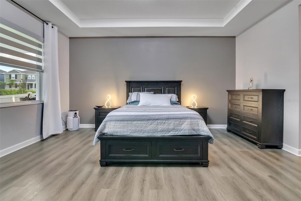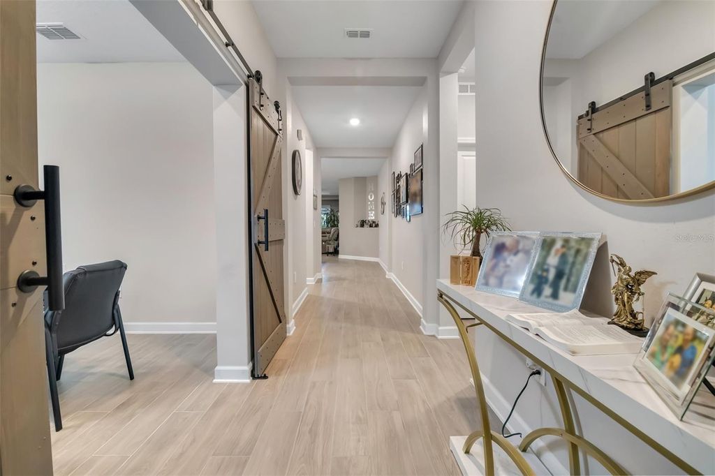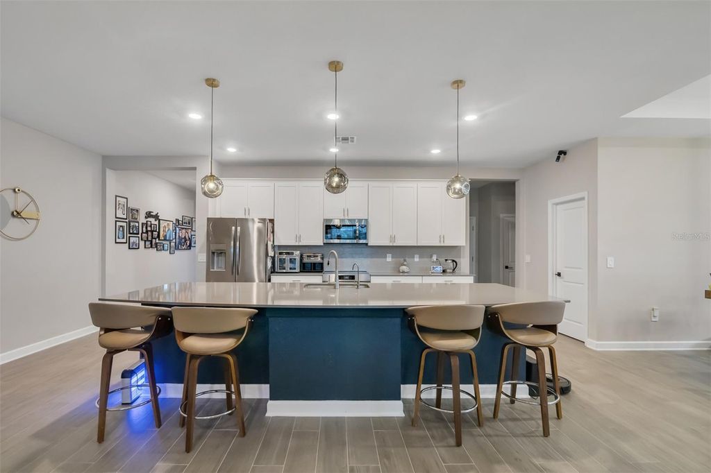 Beautiful Inverness II single-story residence offering refined luxury, space, and exceptional versatility, enhanced by extensive custom upgrades throughout. This elegant open-concept design features a spacious kitchen overlooking the dining and family rooms, ideal for entertaining, and includes a modern induction cooktop for enhanced efficiency and safety. Sliding glass doors open to a covered, screened lanai, creating a seamless indoor-outdoor living experience. The home offers four bedrooms plus two flex spaces, perfectly suited for a private office, fitness studio, game room, or guest retreat. The owner's suite features a spa-inspired bathroom and custom-built closets with barn-style doors, while a secondary bedroom also includes custom closet systems. All carpet has been removed and replaced with durable luxury vinyl flooring throughout. The half bath has been fully remodeled with a modern vanity, mirror, and toilet. Additional upgrades include a custom-designed laundry room and pantry with cabinetry, smart washer and dryer, modern light fixtures, electric blinds, a decorative TV accent wall, interior and exterior security cameras, integrated exterior LED roofline lighting, epoxy garage flooring, and River Rock flooring at the front entry and lanai. EV charging included: Portable Level 1 / Level 2 electric vehicle charger with interchangeable NEMA 5-15 and NEMA 14-50 plugs. Provides up to 40 amps and 9.6 kW charging capacity. Compatible with Tesla and all electric vehicles using the North American Charging Standard (NACS). Includes a 25-foot cable and built-in safety protections. Offered fully furnished, the residence includes all existing furniture. The sale also includes the dining table and chairs, kitchen island seating, luxury lighting, and desks in both office spaces. At the buyer's option, all beds and cabinet-style furniture may remain. Included with the sale are an 85-inch TV in the living room, a 75-inch TV in the owner's suite, and a projector in the game room. A grill and smoker are also included. The garage features storage rails, a rolling storage cage, and an additional refrigerator and freezer. A whole-house water softener, triple filtration system, and reverse osmosis system at the kitchen sink are included. Located within the sought-after Wellness Ridge community, residents enjoy a private clubhouse, fitness center, resort-style pool, sports courts, playground, conservation areas, and scenic multi-use trails. Ideally positioned near Lake Louisa State Park with convenient access to Orlando and major attractions. Ideal as a primary residence, vacation home, or investment opportunity. Truly move-in ready.