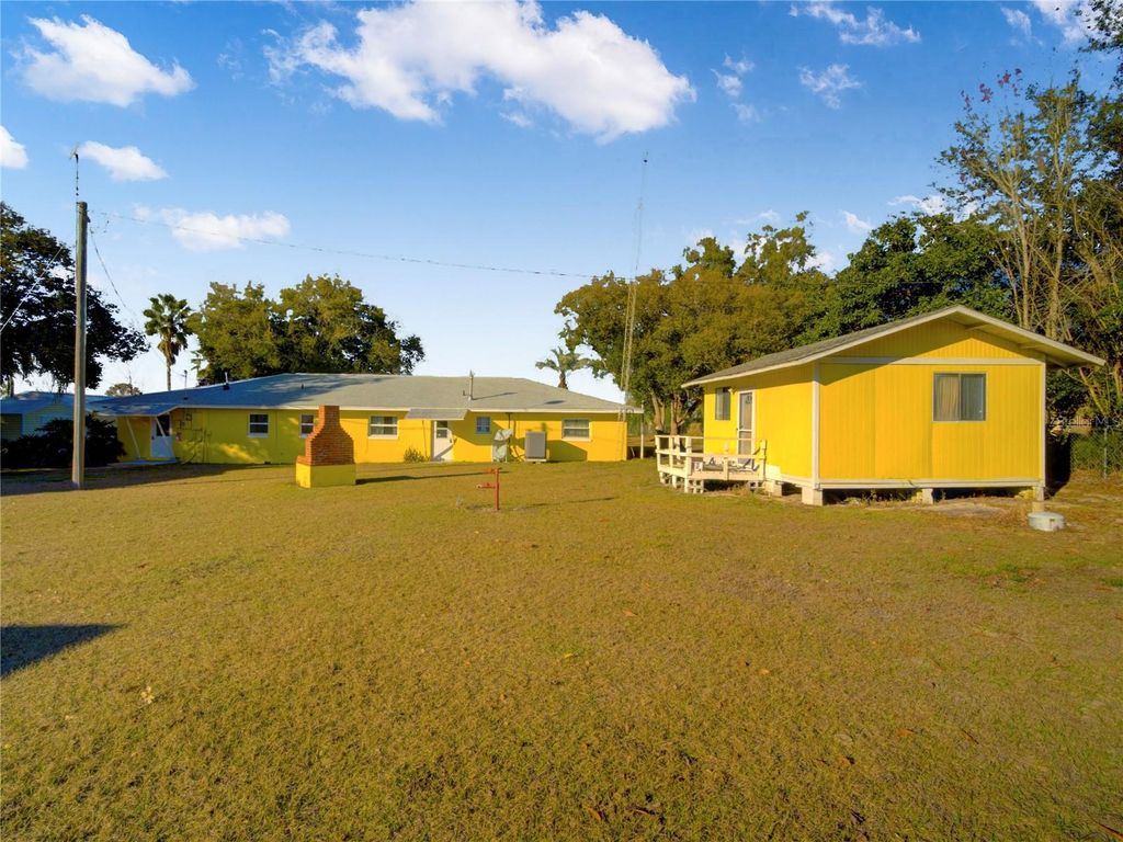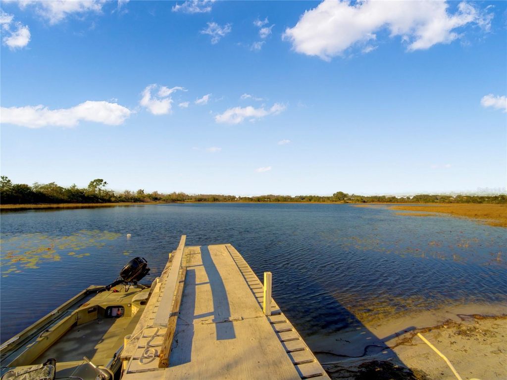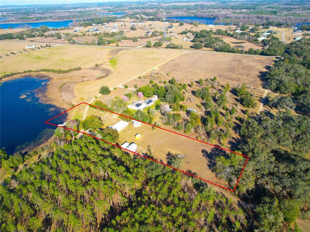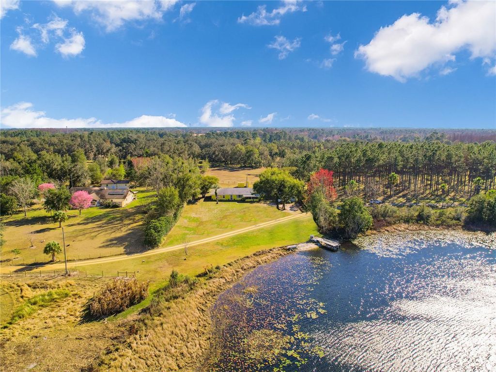 One or more photo(s) has been virtually staged. Experience true Florida lakefront living on this private 2-acre estate in Groveland with limited neighbors, offering 182 feet of pristine lake frontage, private dock, and direct boating access on a scenic fishing lake. Up to 1% lender contribution toward buyer closing costs may be available for accepted offers by March 31, 2026 when using seller's preferred lender. Buyer must qualify. Limitations, terms, and conditions apply. The 3-bedroom, 3-bath home spans just under 2,000 square feet and features a thoughtfully designed split floor plan with extra-wide hallways, multiple entrances into the home, and one entrance equipped with a small ramp for wheelchair accessibility, plus new expansive windows that capture stunning water views from the living room and primary suite. A screened-in front porch provides the perfect place to relax and enjoy peaceful lake breezes. The oversized primary suite offers a flexible sitting area, remote-controlled drapes, a convenient kitchenette with microwave, mini-fridge, and cabinetry, plus a spa-inspired bath with Jacuzzi tub and separate walk-in shower. Additional interior highlights include a sunken Florida room with stone chimney and wood-burning fireplace, classic terrazzo flooring throughout much of the home, and a large interior utility/laundry room with shower and toilet"”ideal for guests or outdoor use. Recent upgrades provide peace of mind, including a new roof (2023), 5-ton A/C system (2020), newer water heater, new washer and dryer, and an updated security system with wired video and audio. The home is supplied by a clean natural aquifer water source, providing exceptionally pure water with no filtration or purification system required. Outdoors, the property truly shines with mature fruit trees, brick BBQ pit, fully fenced grounds, RV parking with 50-amp hookup, trailer hookup, generator hookup (generator not included), and multiple outdoor structures with electricity, including: a detached office/studio, a large metal Quonset-style building designed to withstand extreme wind speeds, multiple storage sheds, a golf cart shed, and a detached 2-car garage with attached shed. (Detached structures not included in living square footage.) Tucked away for privacy yet conveniently located near town, this property delivers the perfect blend of tranquility, space, and functionality. With only three homes on the lake and expansive usable acreage, this is a rare opportunity to own a versatile lakefront retreat offering privacy, space, and endless possibilities.