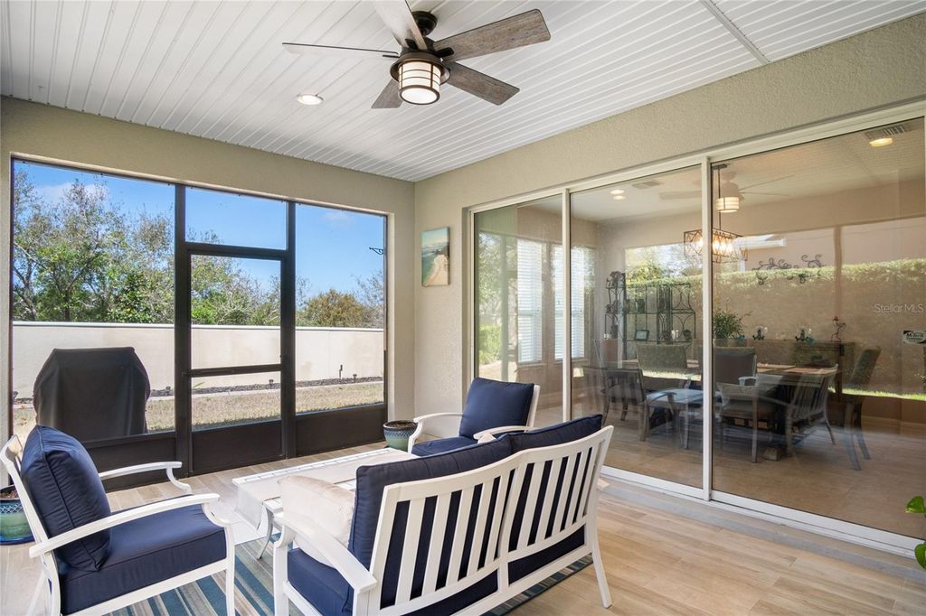 This immaculately home presents itself like a model. Moving into a 55+ community sometimes means losing space, but in the most desirable Larkspur floor plan you will have plenty of space. Trilogy is Lake counties premier 55+ community just a bit north of Clermont. This home features an open floor print with a nice flow between spacious areas of the home. With the chefs kitchen you can enjoy, a wow factor premium granite island, an abundance of maple wood kitchen cabinets, and multi-tone ceramic tile backsplash. $35,000 dollars of recent updates to include new HVAC system which comes with a transferrable 10 year maintenance free warranty, new gas water heater in 2025, and New roof in 2024 all under manufactures warranty and a complete roof solar system pre-paid thru 2034. You will love the large laundry room with a utility sink and two large built in desks for multiple uses. The family room and kitchen combo is one of the best parts of the home to enjoy cooking and entertainment fun with your guests. The dining off the kitchen is perfect for dinners with views of the lush private landscaped back yard. Additionally the flex room has many opportunities for an office/den/or library. The split bedroom designed home has bedroom's on each side of the home for guest privacy. The primary bedroom features double granite vanity, large walk in shower and a huge walk in closet. Extensive ceramic tile throughout with enhanced light color carpet. The covered screened lanai has ceramic tile flooring and is perfect for your morning coffee, or Al Fresco dining later that day. All appliances plus front loader washer and dyer all included. Trilogy offers thru the HOA premium amenities second to non. Indoor /outdoor heated resort pools, spa, total fitness center, tennis courts, bocce ball, pickle ball, a GOLF simulator, full service restaurant breakfast / lunch /dinner, on site massage room, walking trails, doggie park, guard gated security, in home security, wireless high speed internet and cable included , lawn maintenance, and special events coordinator for owners. Trilogy/Cascades is just a bit north of Clermont, that's perfectly situated away from the hustle and bustle of Clermont. Trilogy is just a close drive to Florida turnpike , restaurants, shopping and Orlando International Airport.