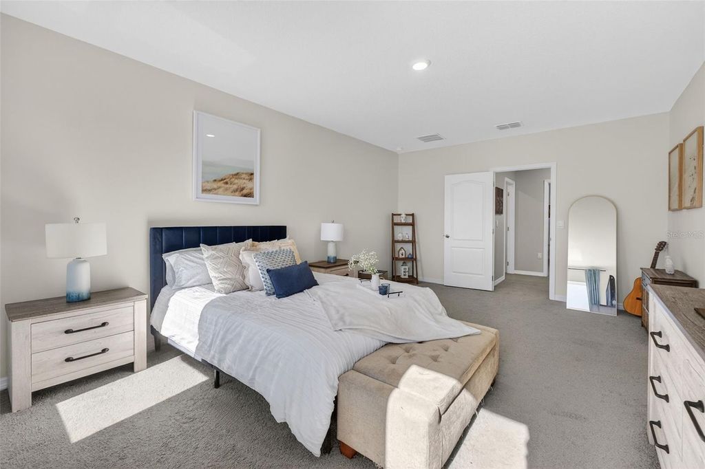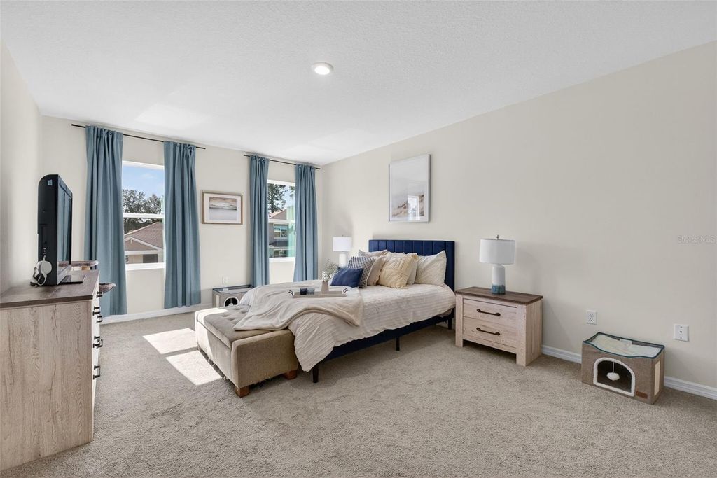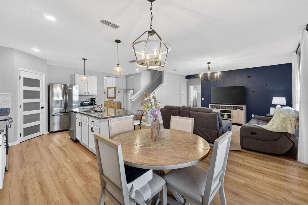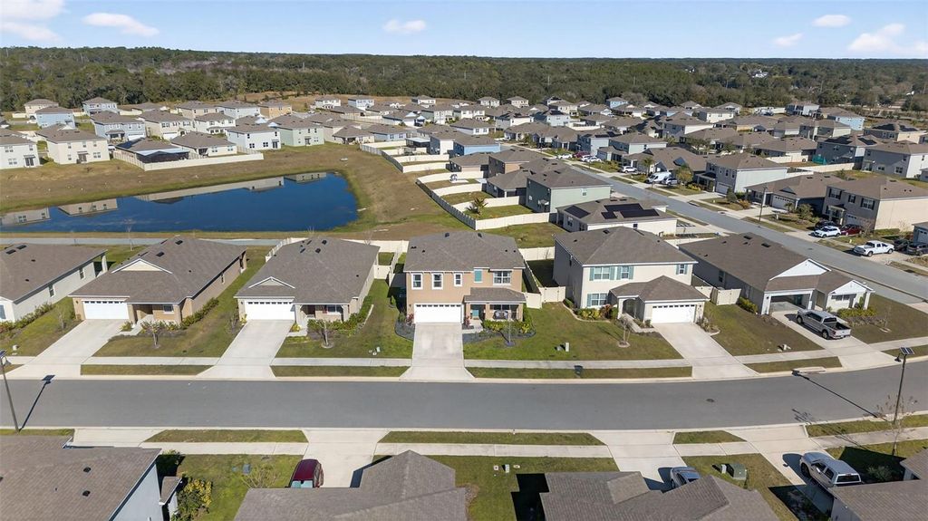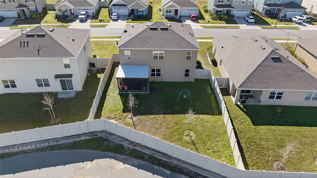 Community pool, no rear neighbors, and just 10 minutes to Downtown Mount Dora! This move-in ready 5 bedroom, 3 bathroom home built in 2023 is located within walking distance (.3 mi) to Round Lake Charter School, only 3.5 miles from the shops, restaurants, and waterfront charm of Downtown Mount Dora, and just one stoplight from 429 highway access for an easy 35-45 minute commute to Orlando. Relax on the screened in lanai overlooking the fully fenced backyard, offering a peaceful outdoor space with added privacy and no homes behind you. Inside, the home has been thoughtfully upgraded with luxury vinyl plank flooring on the main floor and a stylish kitchen backsplash that adds character to the heart of the home. The flexible floor plan features five true bedrooms and three full bathrooms, ideal for working from home or multi-generational living. A downstairs bedroom and full bathroom provide additional flexibility for a home office or private living space. With several upgrades already complete including flooring, fencing, and the screened lanai, this two-story block construction home offers the opportunity to enjoy nearly new construction without the wait.
