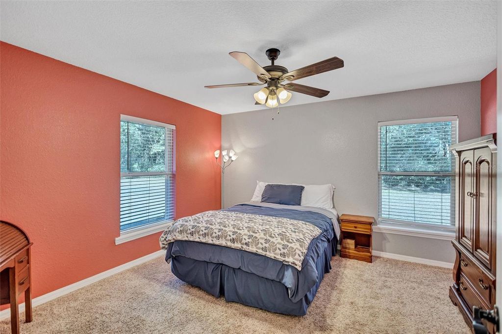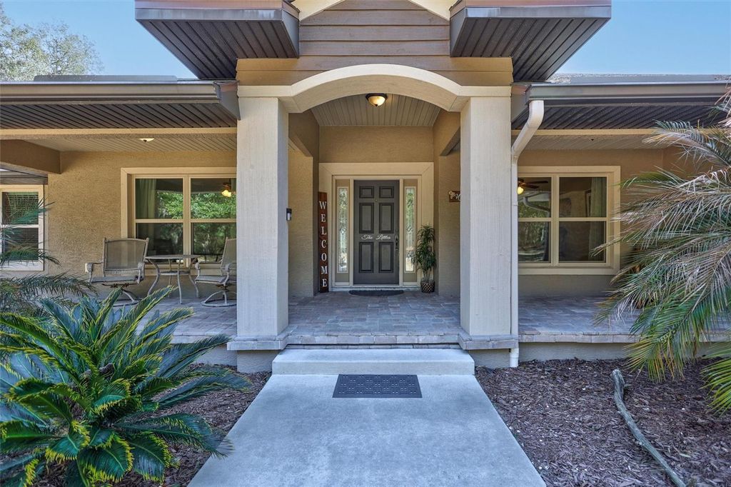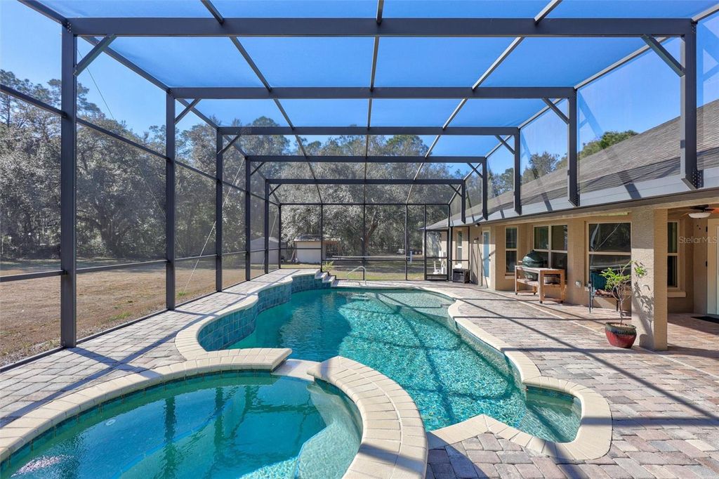Under contract-accepting backup offers. PRIVATE POOL HOME! 5 ACRE ESTATE! Welcome home to your private Florida retreat! If you've been dreaming of owning a beautiful custom-built Florida ranch home on 5 sprawling acres, this is the one you've been waiting for. Tucked away behind a picturesque landscape of mature natural trees, this stunning 2440 sq ft 3-bedroom, 3-full bath home (easily convertible to a 4th bedroom) offers privacy, space, and exceptional craftsmanship throughout! This expansive home is loaded with upgrades, featuring an enclosed, paved lanai overlooking a breathtaking freeform pool with spillover spa"”perfect for relaxing, entertaining, and enjoying Florida living year-round. The heart of the home is a beautifully curated, chef-inspired kitchen where modern elegance meets everyday function. Highlights include a large center island with pull-out drawers and storage baskets, separate breakfast bar, a dedicated prep station with bar sink, solid wood cabinetry, modern stainless-steel appliances with a built-in double oven and cooktop, granite countertops, Butler's-style pantry, and a picturesque dinette with a built-in desk area offers tranquil views of the pool and surrounding landscape"”an ideal spot to enjoy your morning coffee. The home has an ideal 3-way split floor plan offers spacious secondary bedrooms and privacy with all bedrooms having walk-in closets. Plus, a private office which can easily be converted to a 4th bedroom. The spacious Owner's suite is designed as a true sanctuary, featuring dual walk-in closets and a luxurious ensuite bathroom with dual double sink vanities, built-in dressing table, soaking tub, an oversized walk-in shower with dual shower heads, and custom cabinetry. Completing this exceptional property is a large, detached storage outbuilding, perfect for housing an RV, boat, workshop, or recreational equipment. With endless possibilities, wide-open space, and unmatched privacy, this property offers the perfect blend of comfort, functionality, and Florida ranch living.