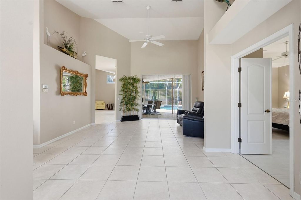Welcome to this beautifully updated four-bedroom, two-bathroom home located in the Sugarmill Woods community of Homosassa. Offering a private pool, no rear neighbors, and peaceful tree-lined views, this home is the perfect blend of comfort, privacy, and Florida living. Major upgrades provide peace of mind, including a 2024 roof, new electrical panel, paid-off solar panels installed in 2017, and new countertops and stainless steel appliances (2023). Additional improvements include travertine pool patio (2023), new pool screen (2024), and brand-new tile flooring in the primary bedroom. Step inside through the foyer entrance to find a bright and open layout with sliding glass doors that fill the home with natural light. The home offers both a front living room and dining room, along with a spacious family room featuring high vaulted ceilings. The gorgeous kitchen opens to the family room and is designed for both functionality and style, featuring quartz countertops, stainless steel appliances, a beautiful backsplash, abundant cabinetry, a center island for prepping, a breakfast bar, and a breakfast nook overlooking the pool area. The spacious primary suite is a true retreat, complete with private sliding glass doors leading to the screened-in pool area, a large walk-in closet, and a well-appointed en-suite bathroom with a dual-sink vanity, soaking tub, separate shower, private water closet, and linen closet. The additional bedrooms are nicely sized and share a full bathroom, while the dedicated laundry room offers a utility sink, extra cabinetry, and a storage closet for added convenience. Step outside to your own Florida oasis, featuring a screened-in pool, covered patio area for outdoor dining, and plenty of space to grill, relax, and entertain - all set against a tranquil, tree-lined backdrop with no rear neighbors. Additional features include well water for irrigation and public water for the home, enhancing efficiency and convenience. Ideally located near shopping, dining, and the Sugarmill Woods Country Club, this home offers both a peaceful setting and easy access to everyday amenities. Don't miss your opportunity to own this move-in ready pool home - schedule your private showing today!