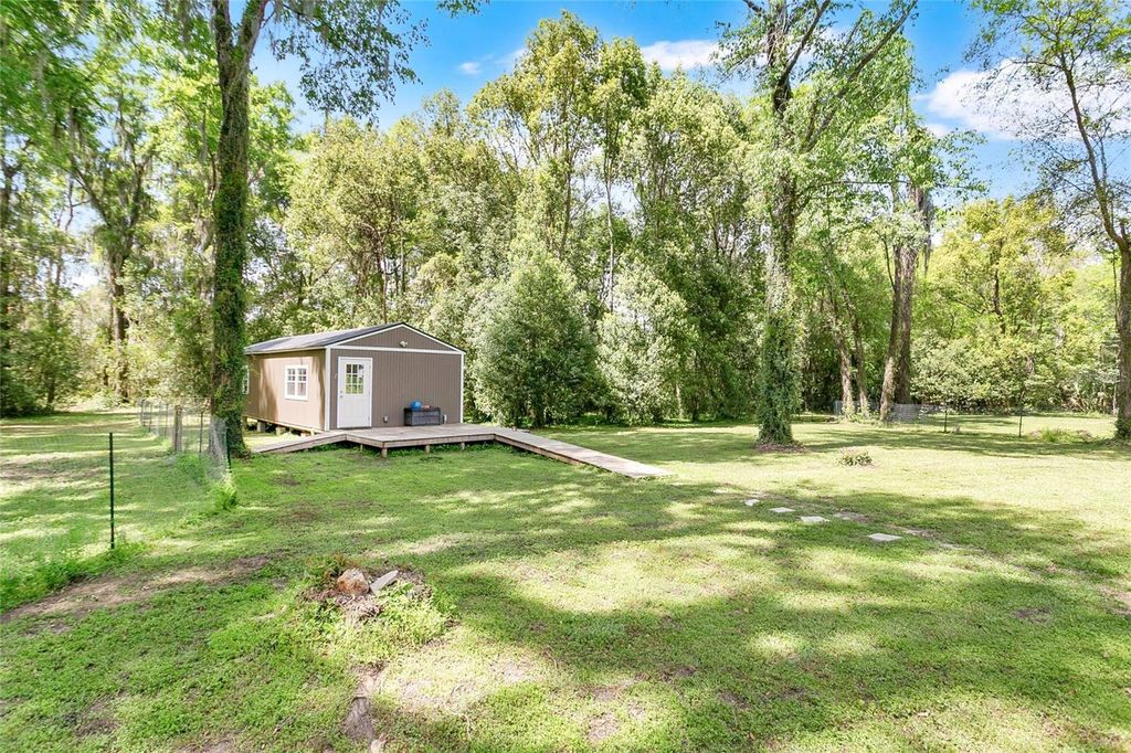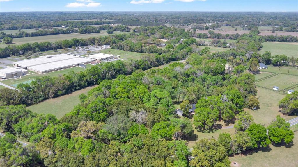 Welcome home to your dream estate on 14.66 acres of prime agriculturally zoned land, conveniently located near the World Equestrian Center. This ranch-style property is truly one-of-a-kind. The home features 4 bedrooms, 3 bathrooms, and 2,589 sq/ft of living space with a desirable split floor plan. Step inside to find bright, open main living areas providing a great blend of comfort and space. The living room is highlighted by two large windows that bring in abundant natural light. The space flows seamlessly into the kitchen and dining area, creating an ideal gathering area for everyday living or entertaining. The kitchen offers granite countertops, a large island with bar seating, 38-inch cabinets, and newer stainless-steel appliances. Just off the kitchen is a versatile den, perfect for a playroom, home office, or easily converted to a fifth bedroom. This home includes two primary suites, each with spacious walk-in closets and en-suite bathrooms featuring tiled walk-in showers. There are also two additional oversized bedrooms that provide even more space to accommodate a large family. Outside, relax on the large wooden deck overlooking your private acreage. The property also includes a 16x40 permitted office building equipped with power, water, HVAC, a kitchenette, and a full bathroom, making it an excellent setup for remote work or accommodating guests. There are two additional storage buildings, including one with roll-up doors and a walk-in attic, offering convenient storage for equipment and tools. While the property features beautiful tree coverage for privacy, it also provides two well-maintained pastures, one near the front of the property and a larger pasture at the back bordering North Marion County Middle School, perfect for horses. The home underwent a full renovation in 2021, including a fully updated interior, new metal roof, new HVAC, double-pane windows, and a new well. Don't miss this incredible opportunity, schedule your private tour today!