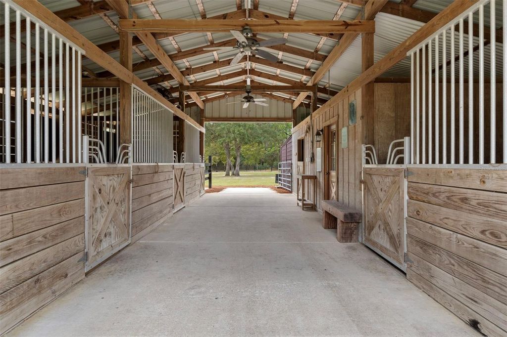 CUSTOM EQUESTRIAN ESTATE ON 7.39 ACRES OF IMPROVED PASTURE - Experience the perfect blend of LUXURY LIVING & EQUESTRIAN FUNCTIONALITY in this CUSTOM 5-BEDROOM (PLUS OFFICE), 3.5-BATH ESTATE designed for comfort, versatility, and connection to the land. With 2 PRIMARY SUITES, this home is ideal for MULTI-GENERATIONAL LIVING or accommodating a TRAINER OR STABLE HAND "” the secondary suite features a PRIVATE SIDE ENTRANCE that opens into the main living area with convenient access to the HORSE BARN. Step inside and you'll find ornate craftmanship and custom finishes throughout "” from WOOD-BEAMED CEILINGS in the formal living and dining rooms to the WOOD-LOOK TILE FLOORS that add warmth and elegance. HIGH CEILINGS & ABUNDANT NATURAL LIGHT create an expansive, open, and airy feel throughout the home. The real living areas overloook the SCREENED-IN POOL AND SPA, providing year-round enjoyment and a seamless indoor-outdoor flow. Beyond the pool, the property transitions beautifully into FENCED, IRRIGATED PADDOCKS leading to a 4-STALL CENTER-AISLE BARN equipped with everything a discerning horse owner needs including MULTIPLE WASH RACKS WITH HOT WATER, FEED ROOM & SEPARATE TACK ROOM, ADDITIONAL EQUIPMENT STORAGE, SLIDING CROSS-BUCK STALL DOORS AND FEED DOORS, & BARN DOORS OPENING DIRECTLY TO PADDOCKS for easy turnout. The 7 GRASS PASTURES are irrigated by a private well, making maintenance effortless. For additional training, there's a ROUND PEN, and behind the barn sits a 2,000 sq. ft. RV AND EQUIPMENT BARN with CONCRETE SLAB & ELECTRIC including 30 AMP & 50 AMP SERVICE. Backing directly to the 28-MILE PRIVATE HORSE TRAIL SYSTEM, this property offers quick trail access to the COMMUNITY EQUESTRIAN TRAINING CENTER featuring a large lighted RIDING ARENA, DRESSAGE ARENA, HUNT COURSE, & TRAIL COURSE. For those who compete or train regularly, it's a dream setup "” and just a short drive from OCALA'S WORLD EQUESTRIAN CENTER and FLORIDA HORSE PARK. Need more land? An ADDITIONAL 6.5-ACRE PARCEL is also available directly behind this property for expanded possibilities. This is a RARE OPPORTUNITY TO OWN A TRUE EQUESTRIAN LIFESTYLE ESTATE where LUXURY, LAND, & LOCATION unite perfectly. Don't wait too long on this EXCEPTIONAL VALUE "” properties offering this level of quality and equestrian infrastructure are few and far between.